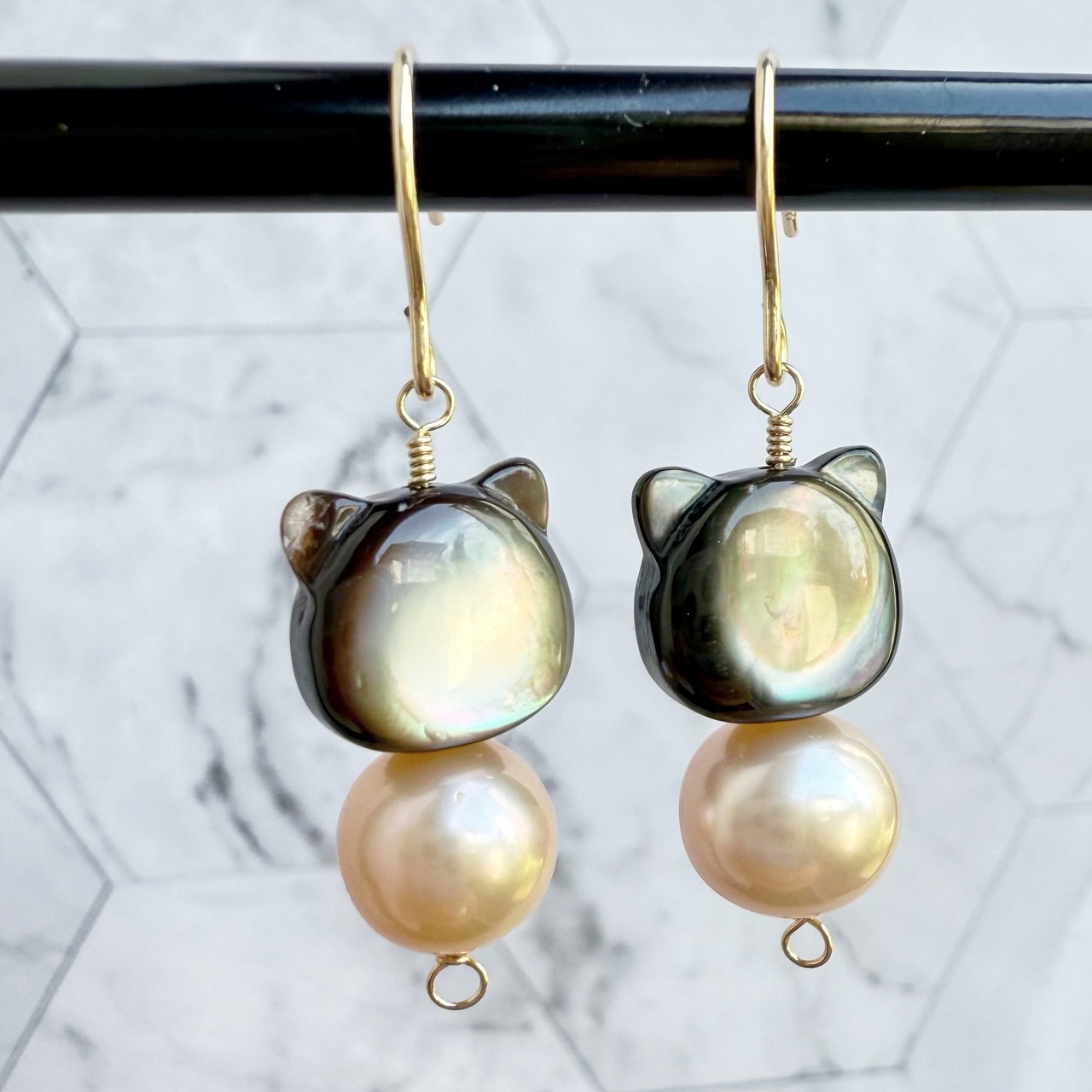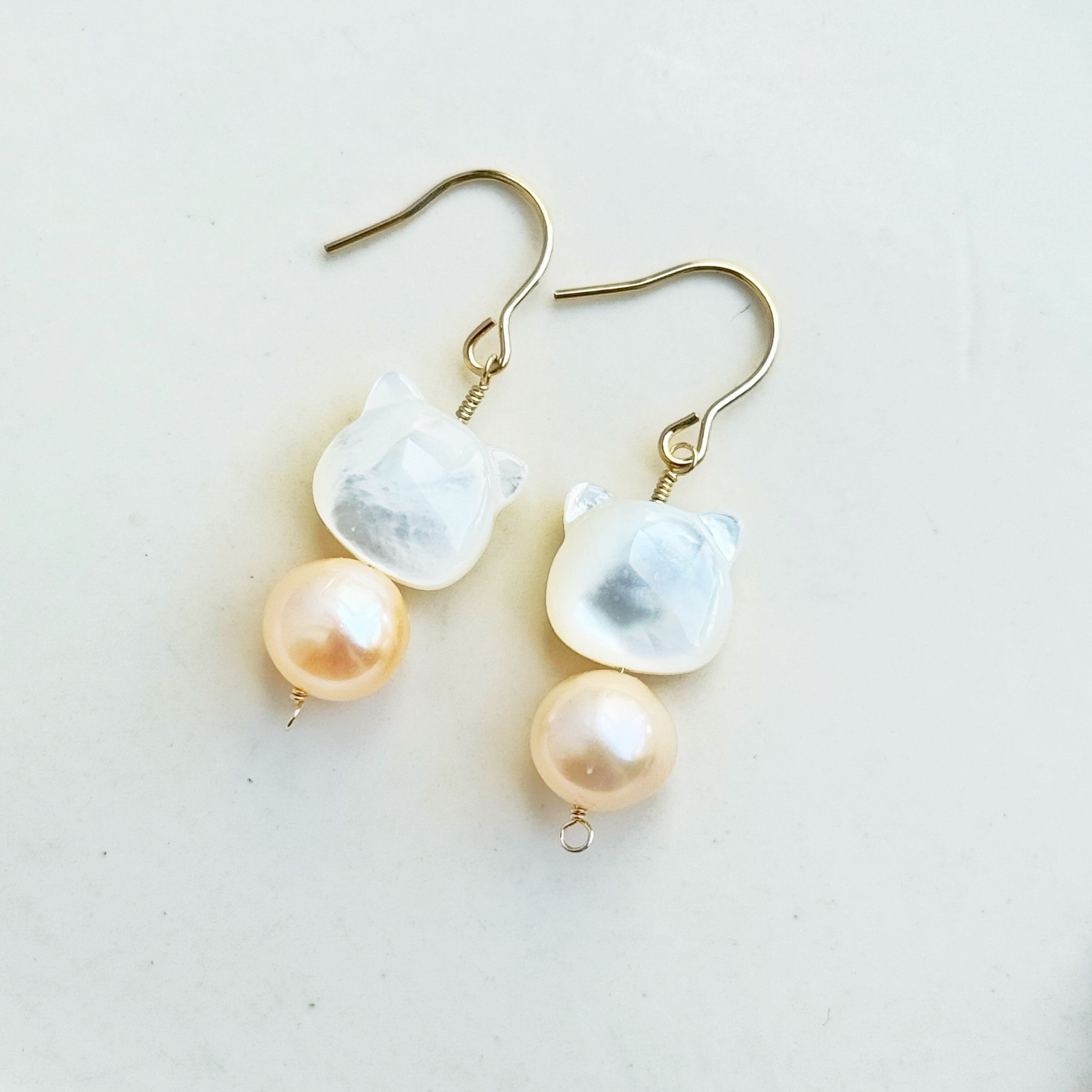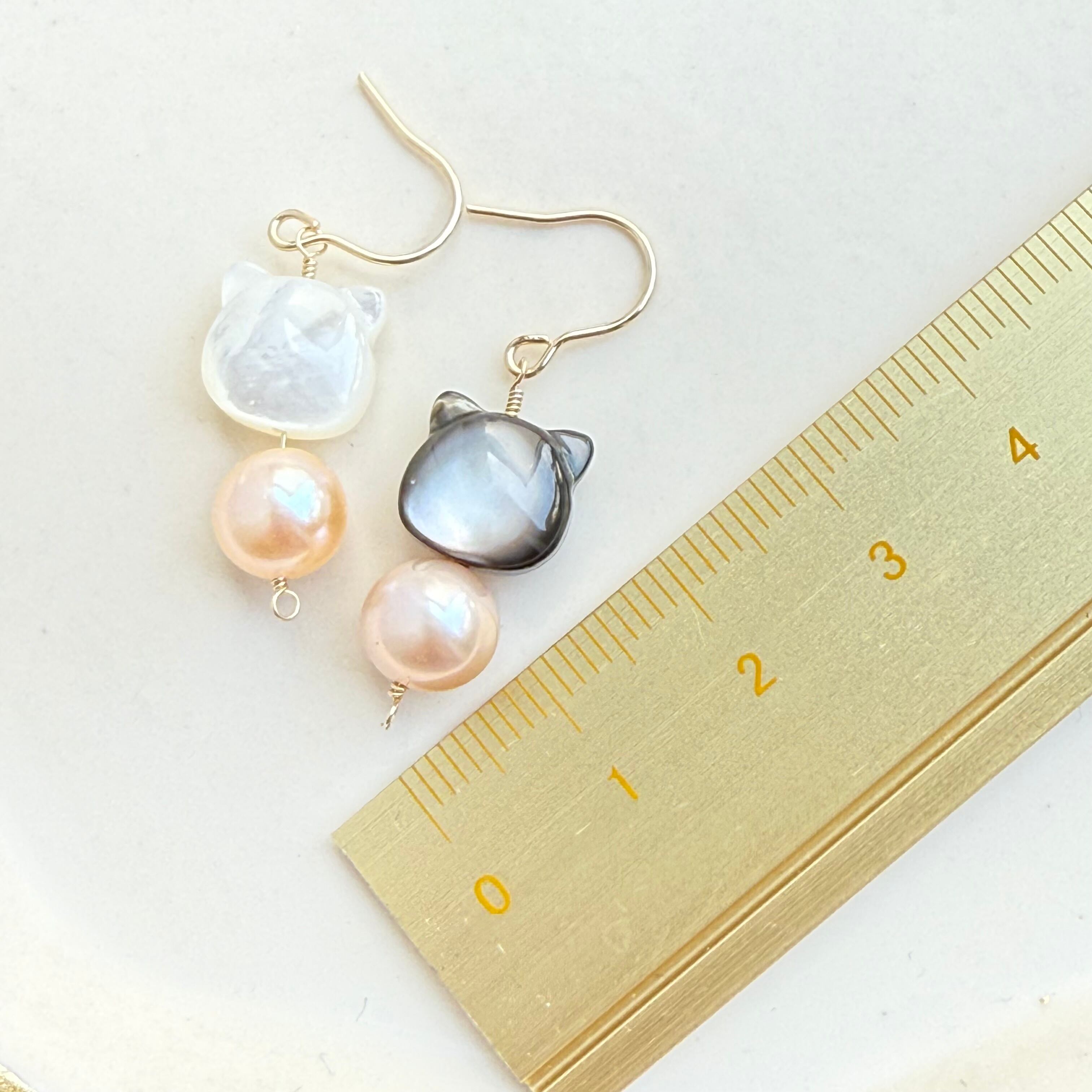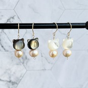 《Chaton Pearl》-シャトンパール-大人可愛い 猫ピアス・イヤリング 天然シェル&淡水パール 14KGF