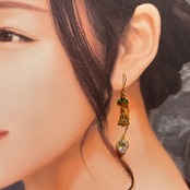 きらめくクリスタルハートに、ゴールドのツリーと柊を添えたクリスマスイヤリング。