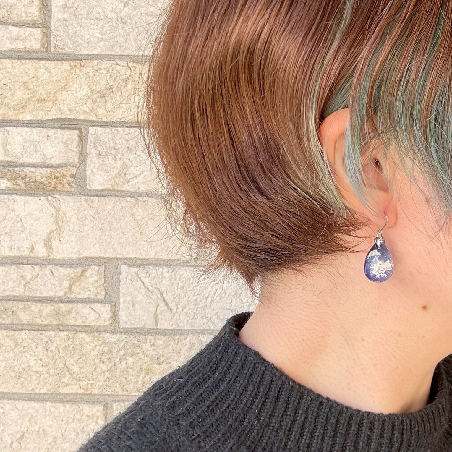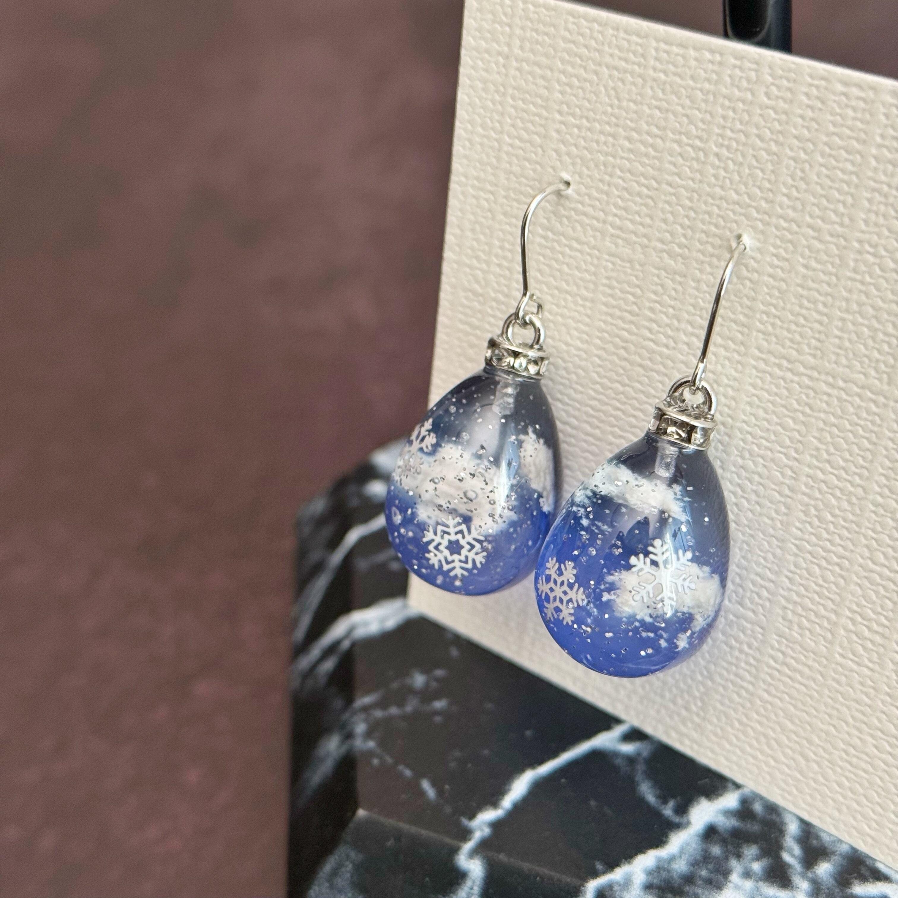 空をひとすくい 雪降る夜の空卵ピアス イヤリング