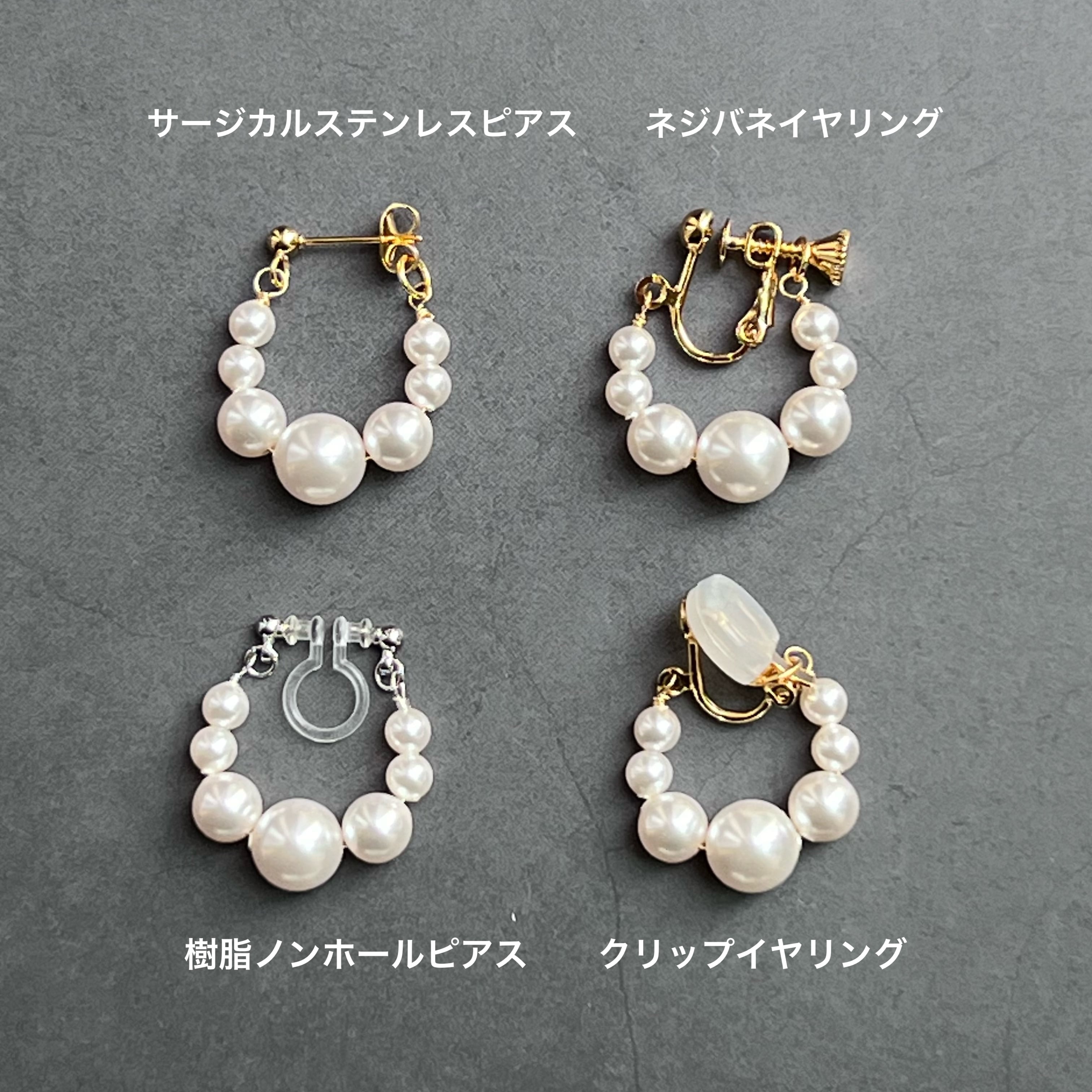 ・素材:貴和クリスタルパール(ホワイト)、サージカルステンレス(ピアス)、K16GPまたは本ロジウムコーティング(その他金具)