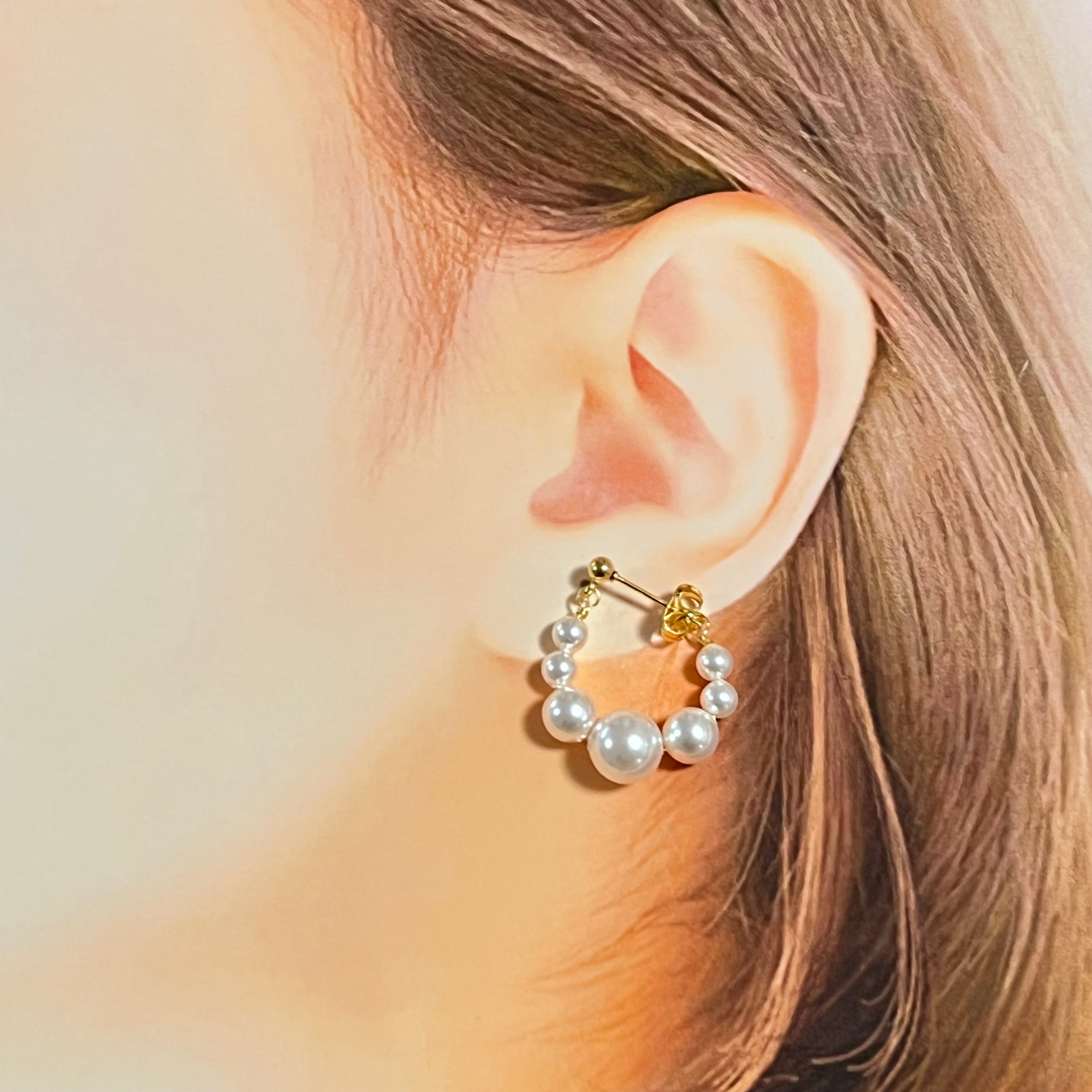 クリスタルパールのフープピアス イヤリング フォーマルからカジュアルまでこれ1つ