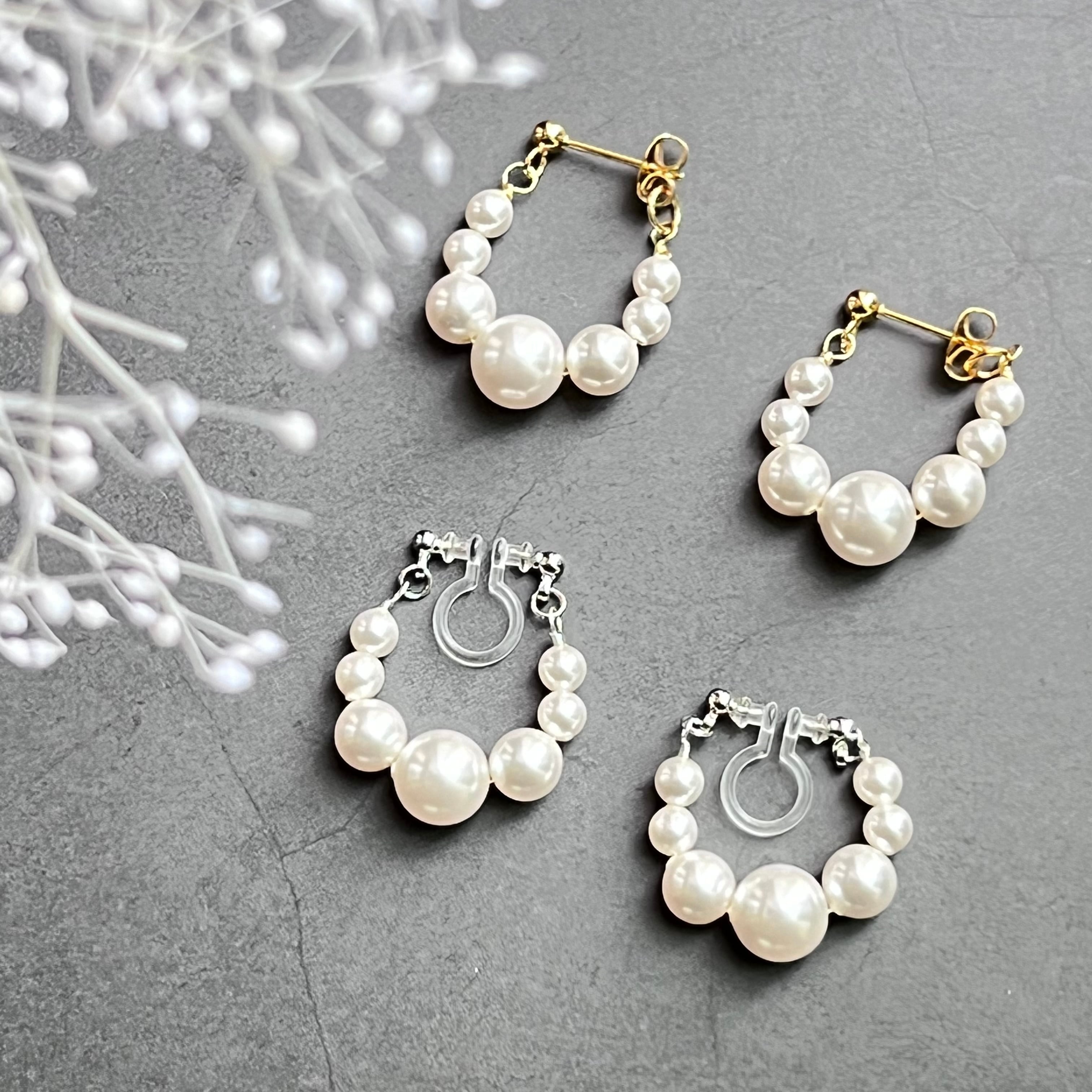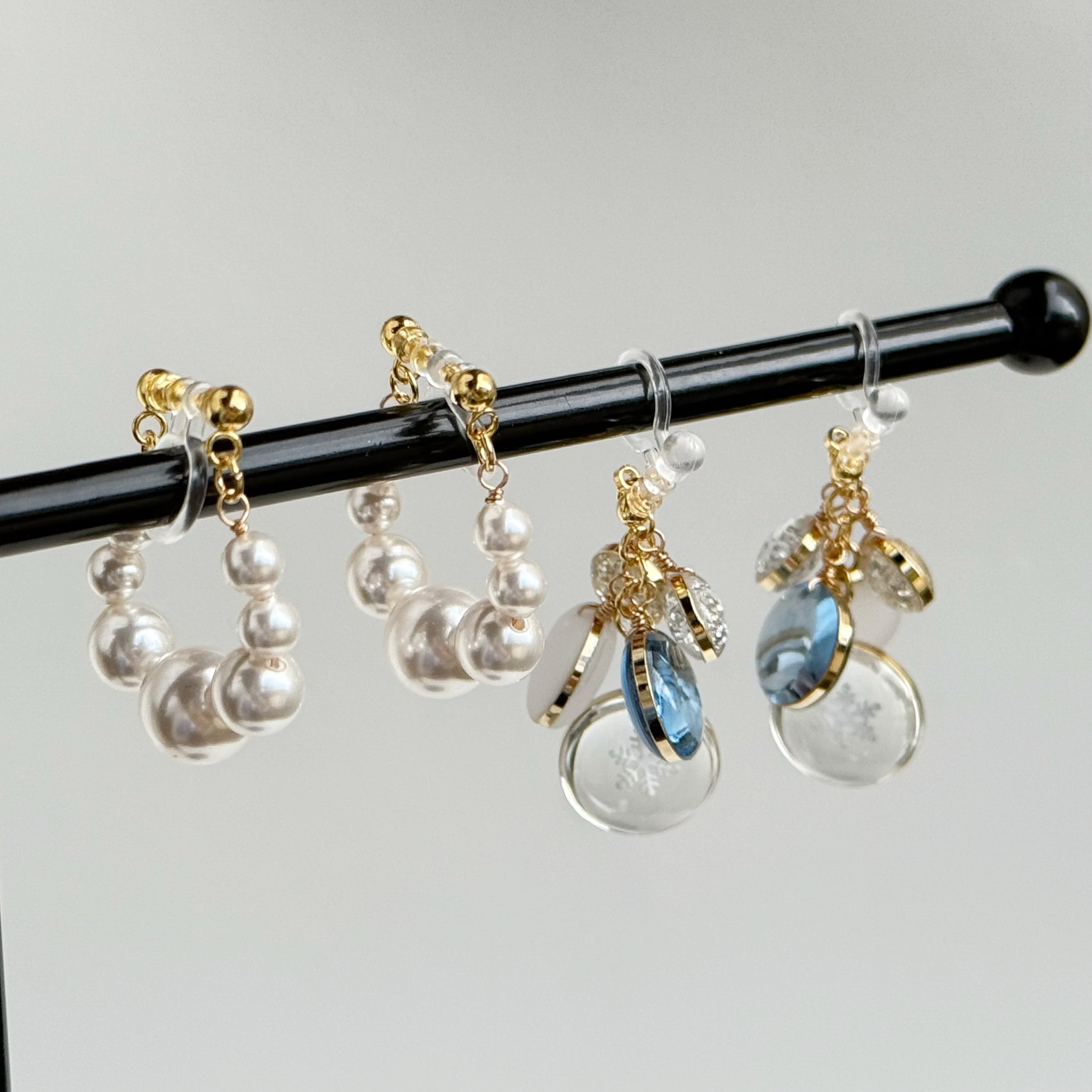 冬と春をつなぐ 透明きらめきセット クリスタルパール&スノーブルーのピアス/イヤリング 2点セット