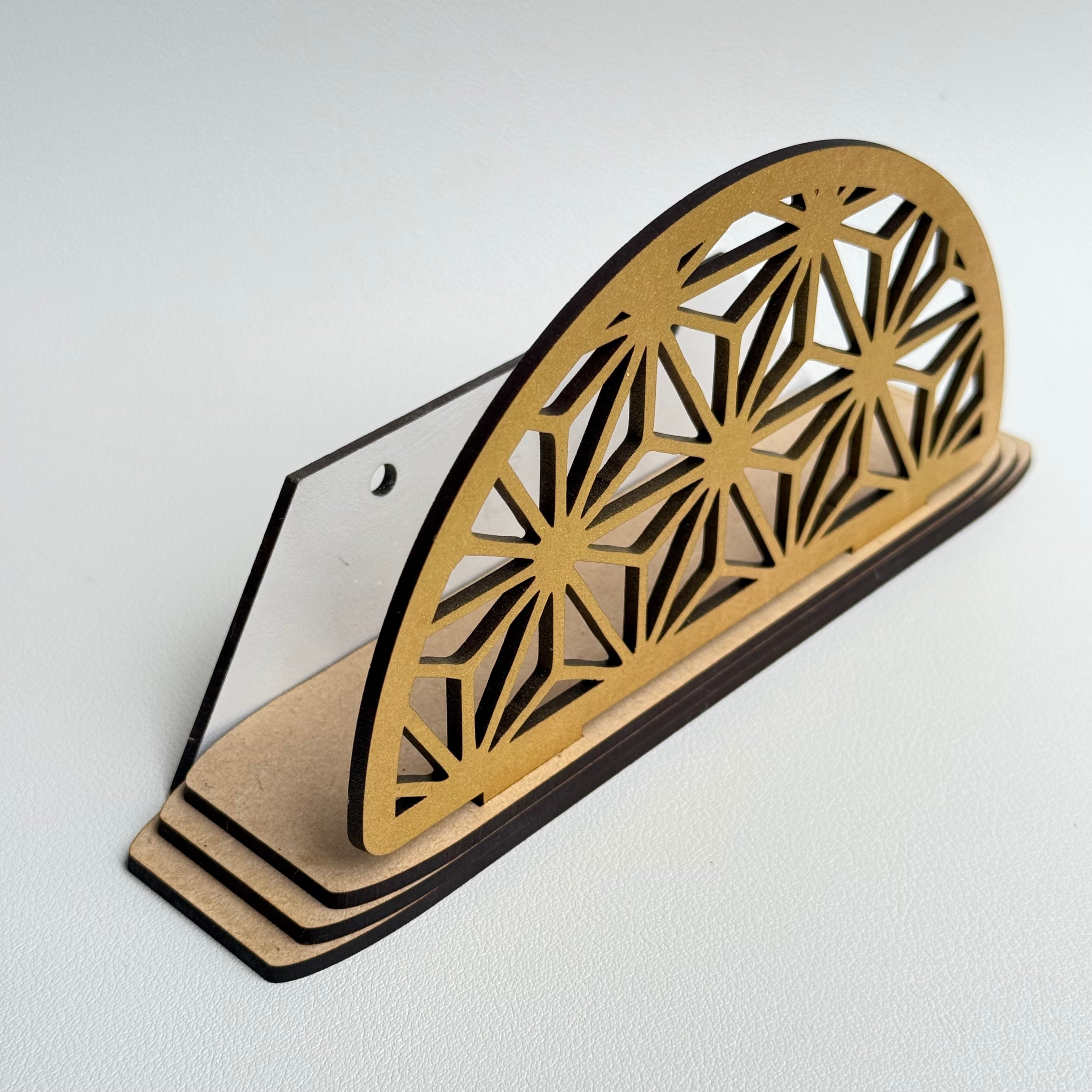 日本の伝統模様「麻の葉(あさのは)」をあしらった、壁掛けタイプのモダンなお札立てです。