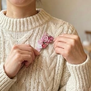 • 回転ピンを採用(ブローチ): 厚手のコートやストールにつけても外れにくい、日本製の回転ピン(ロック式)を使用しています。大切なブローチを落とす心配を減らしました。