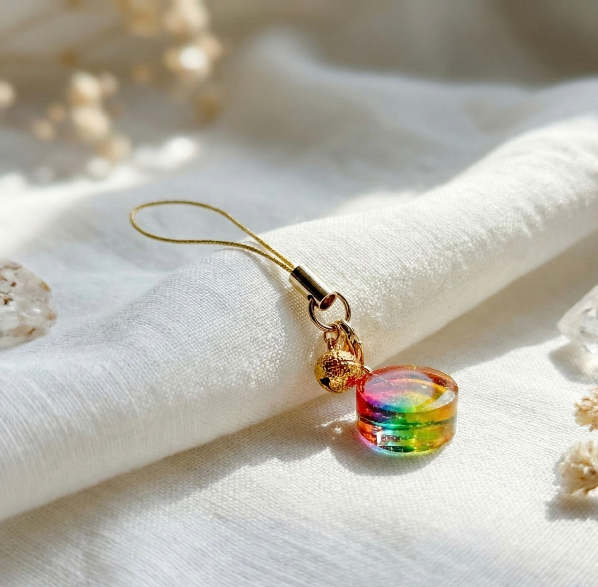 溶けないロマン 虹色にきらめく「手まり飴」のレジンチャーム ー 京の彩りを添えて 和菓子