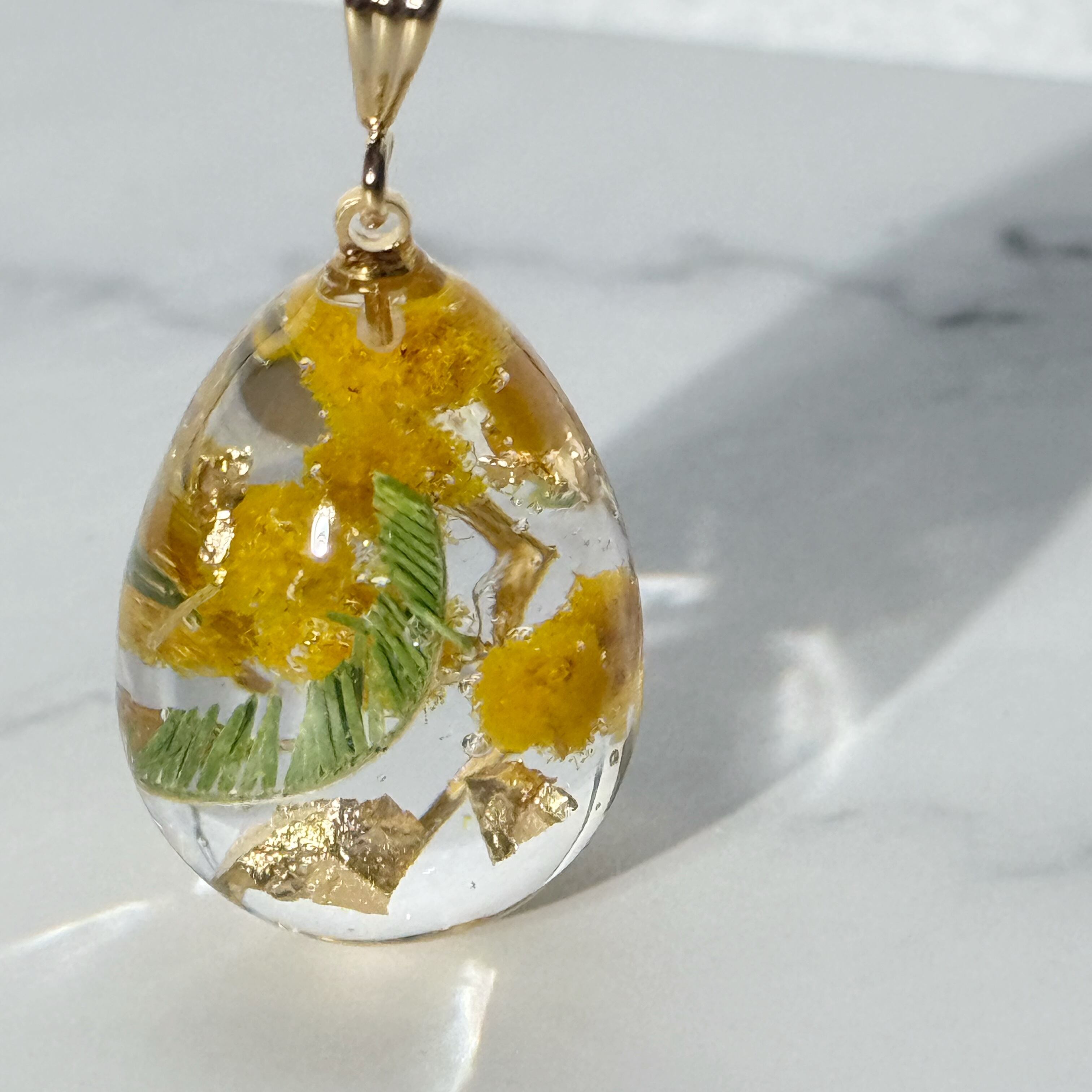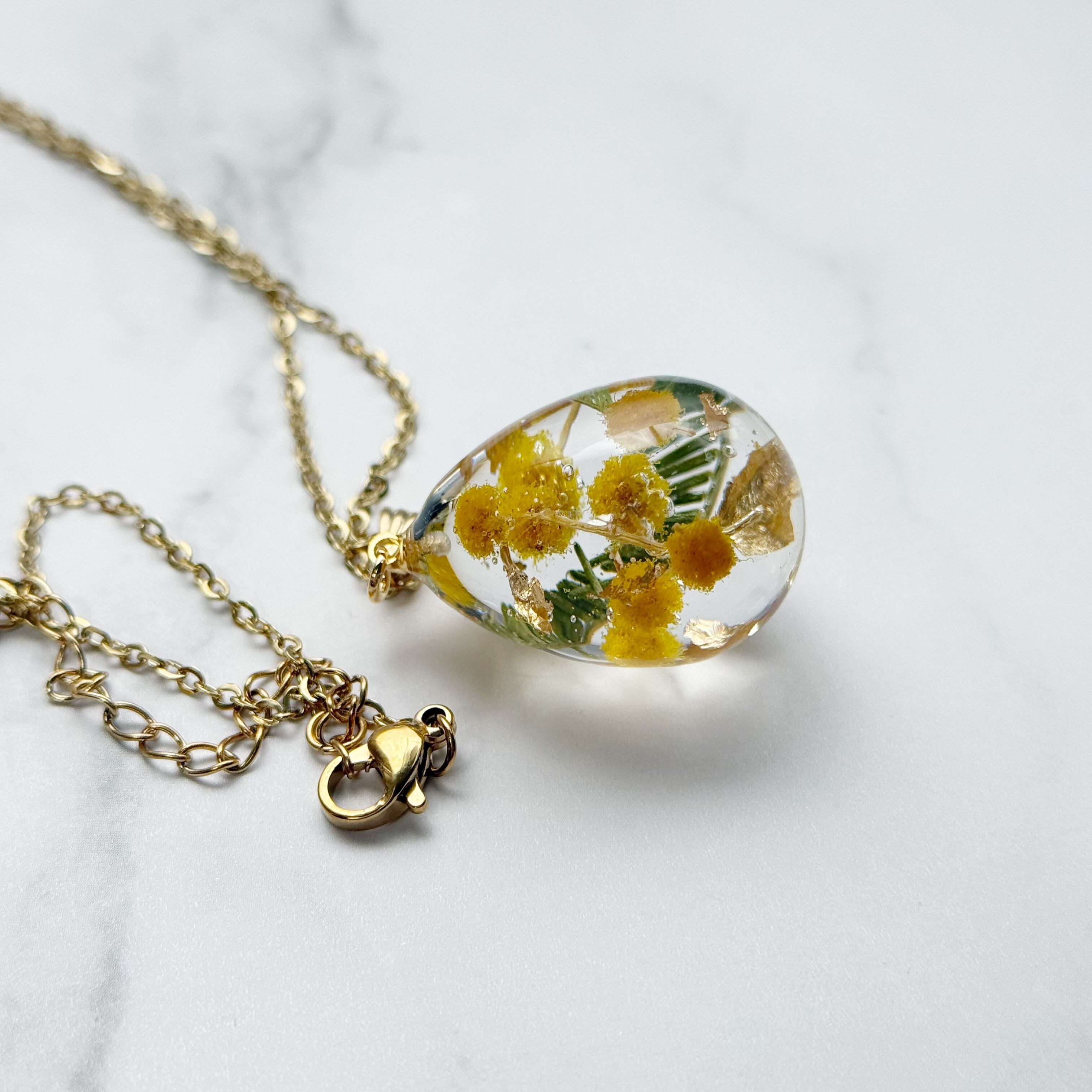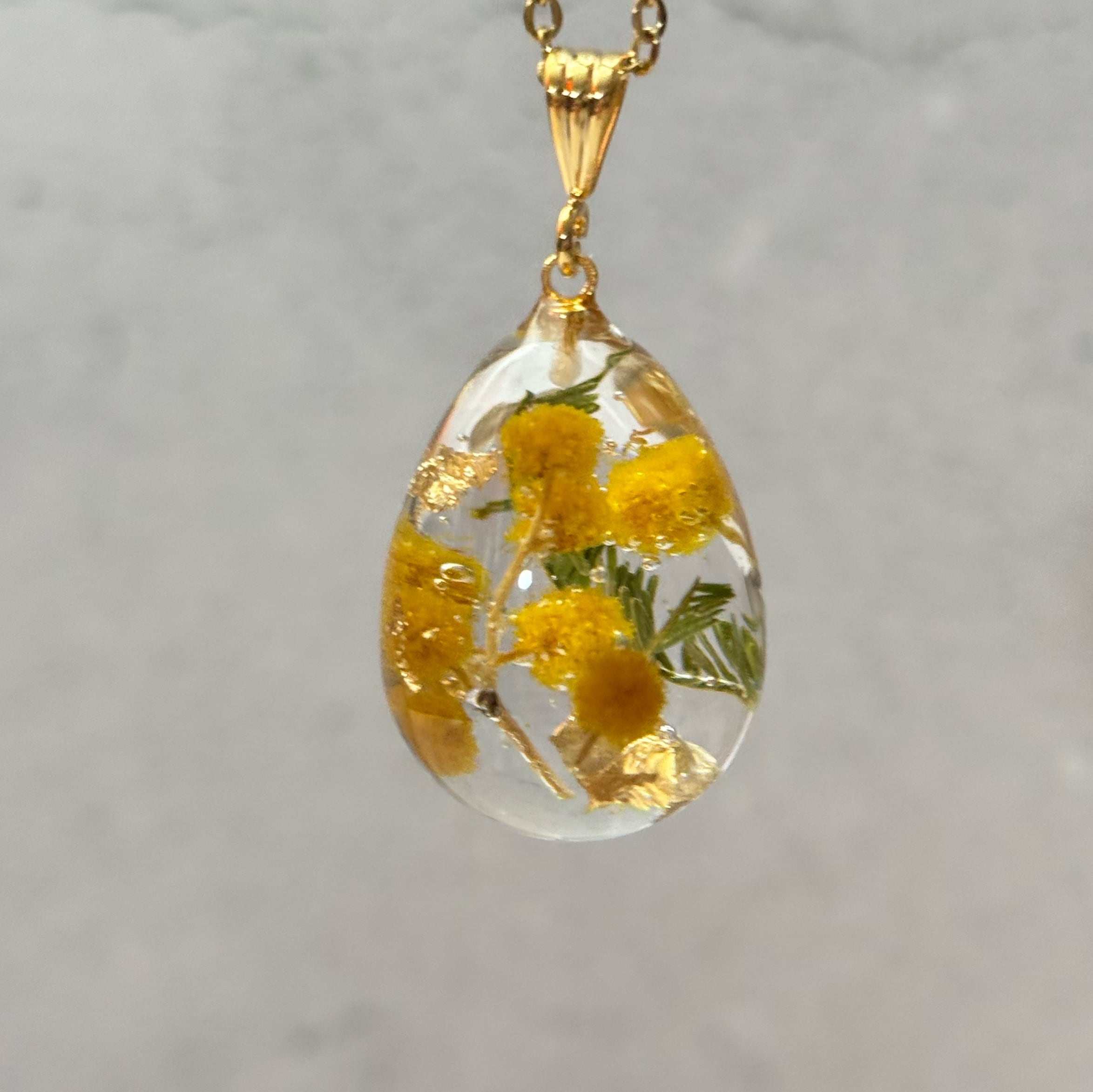 【期間限定】春を閉じ込めた、フレッシュミモザのたまご型ネックレス サージカルステンレス