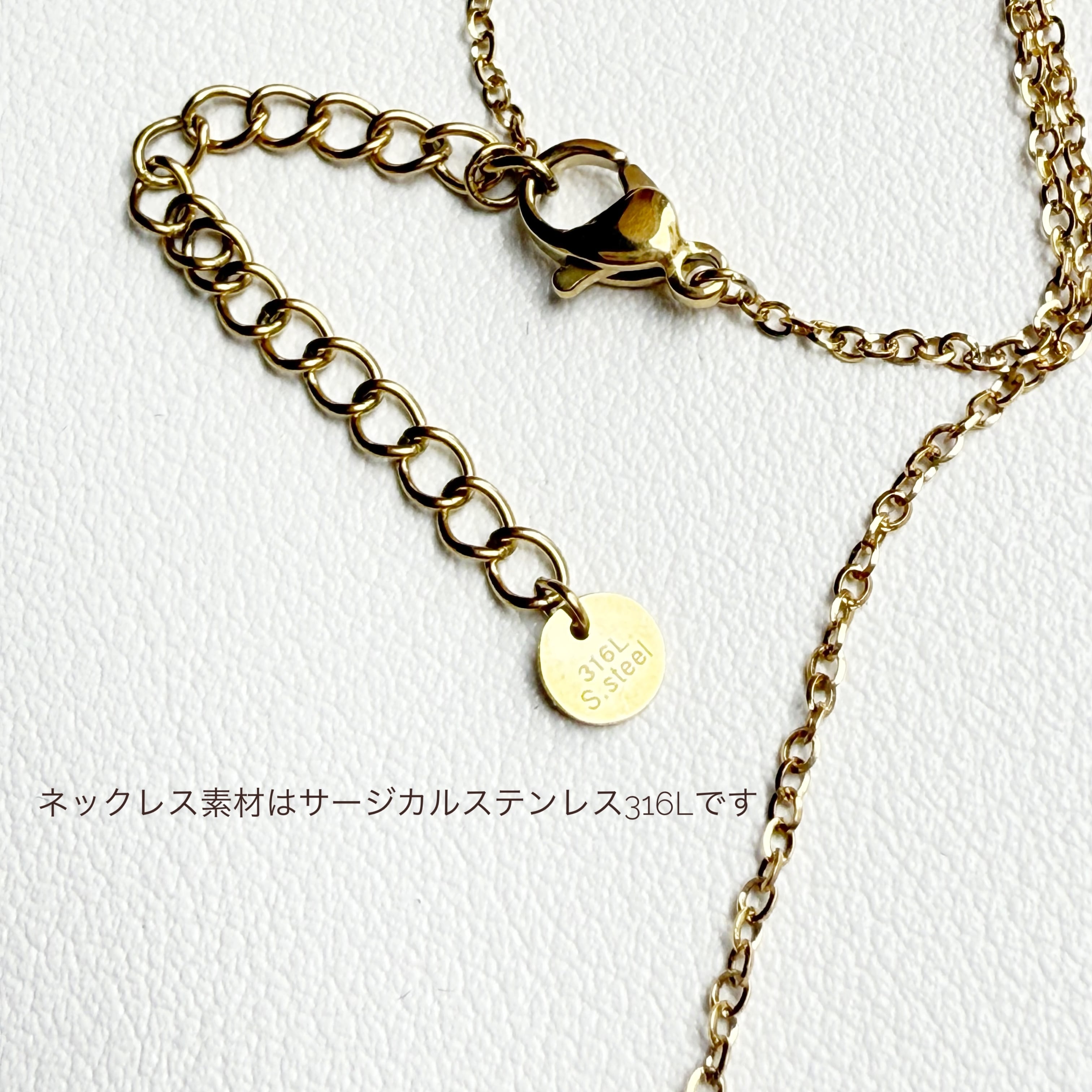 チェーン&カニカン合計38cm(+パール1cm強)+エンダーチェーン5cm+直径5mm丸型メタル(316L S.steel刻印付き)