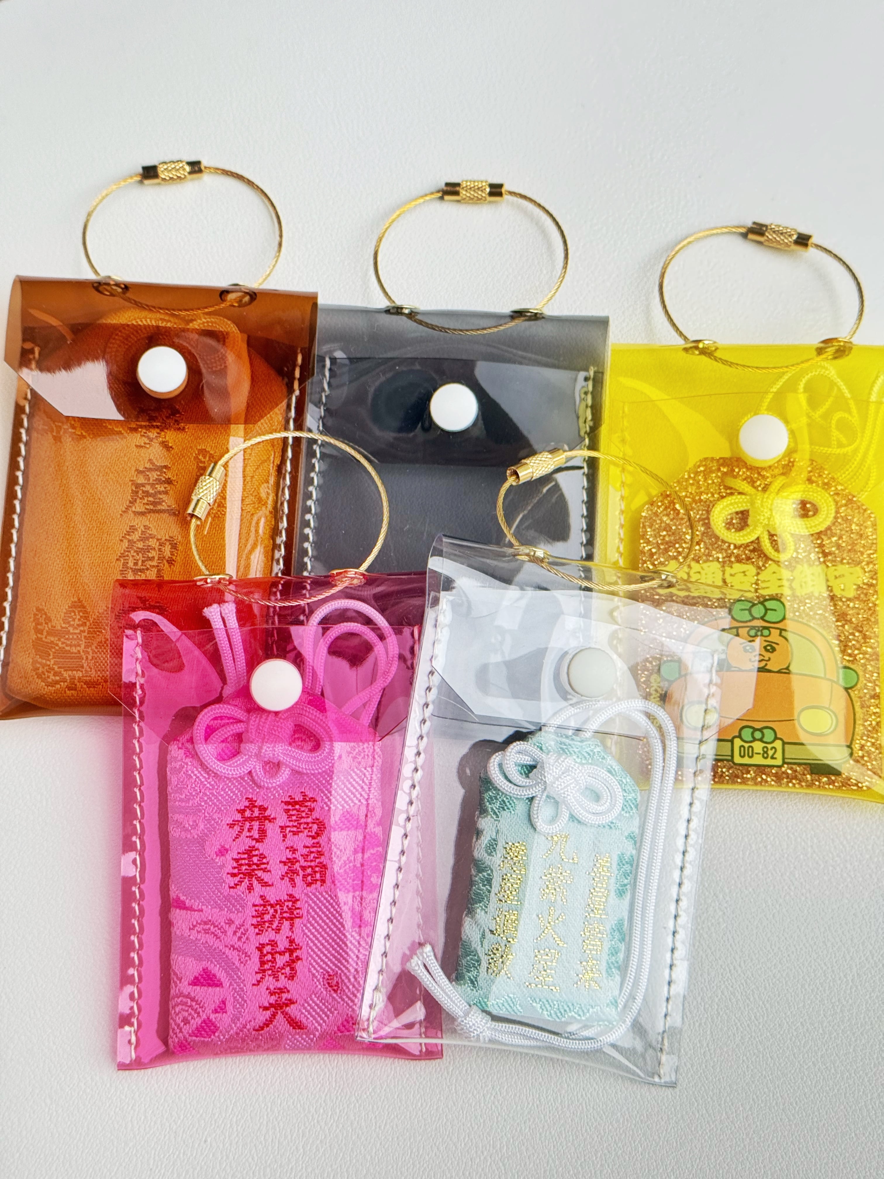 中身が透けて見える透明なデザインは、お守りの美しい刺繍や色合いを損なうことなく、あなたのバッグや装いにそっと寄り添います。