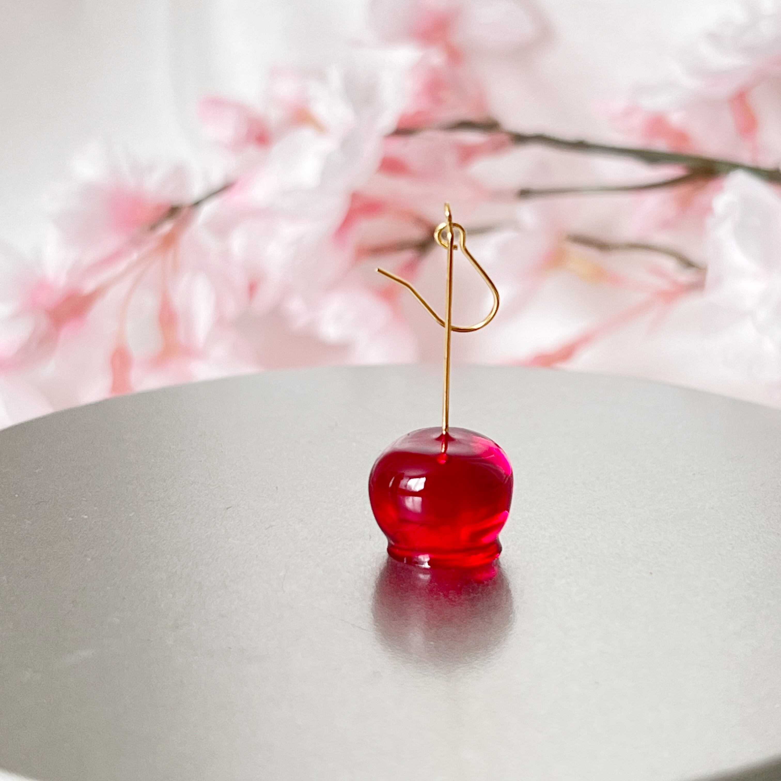【片耳販売】透明感の美しいミニチュアりんご飴のピアス イヤリング イヤーカフ チャーム