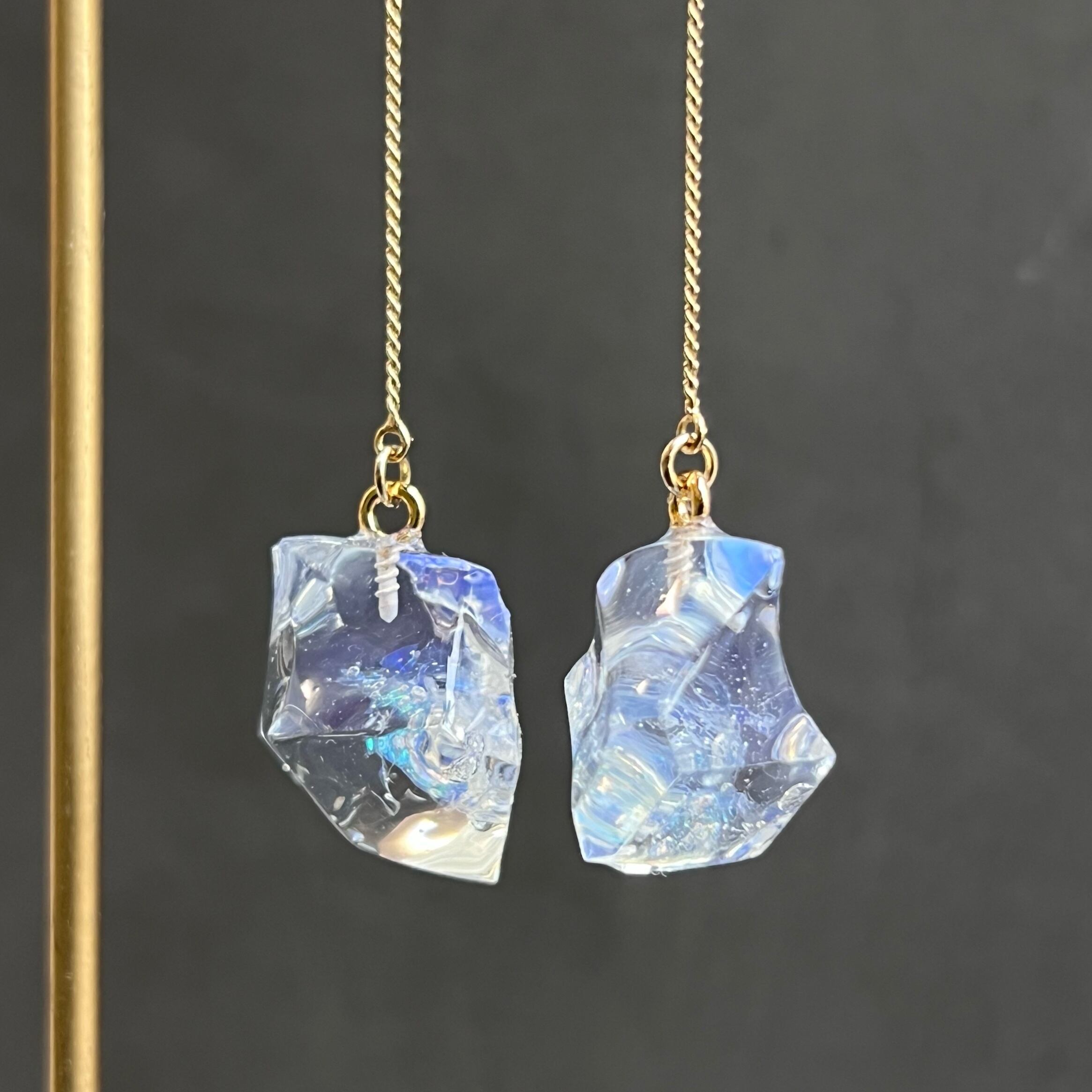 氷のような 揺れるオーロララフロックピアス イヤリング イヤーカフ ブラックライトで光る