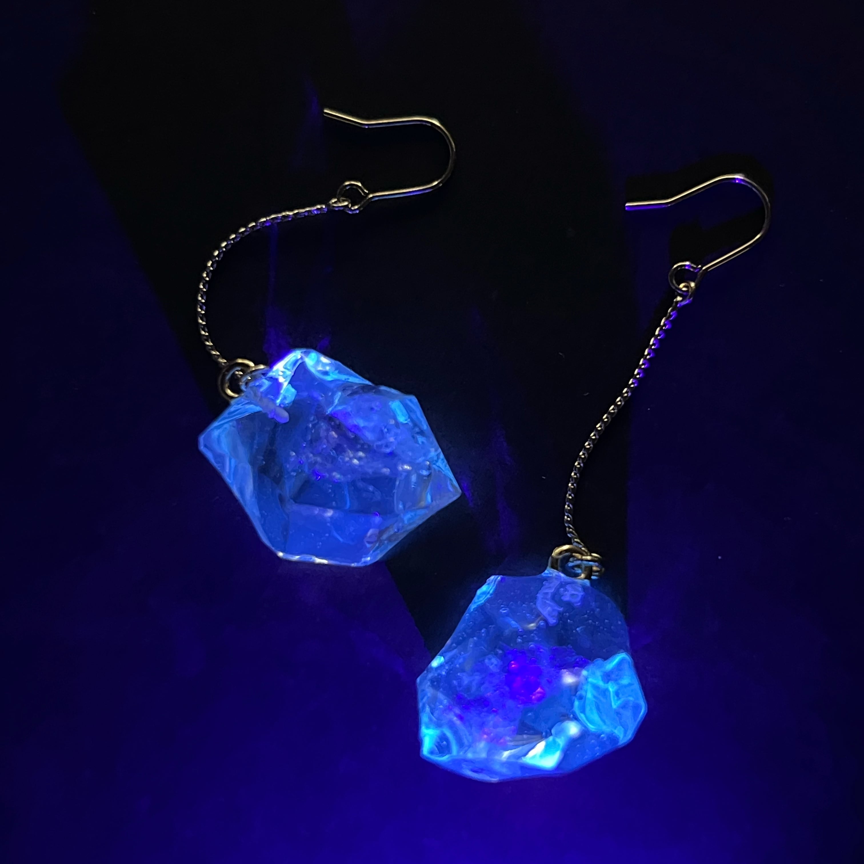 さらに、こちらは特殊なレジンを使用しており、ブラックライトを当てるとうっすら青く光ります。