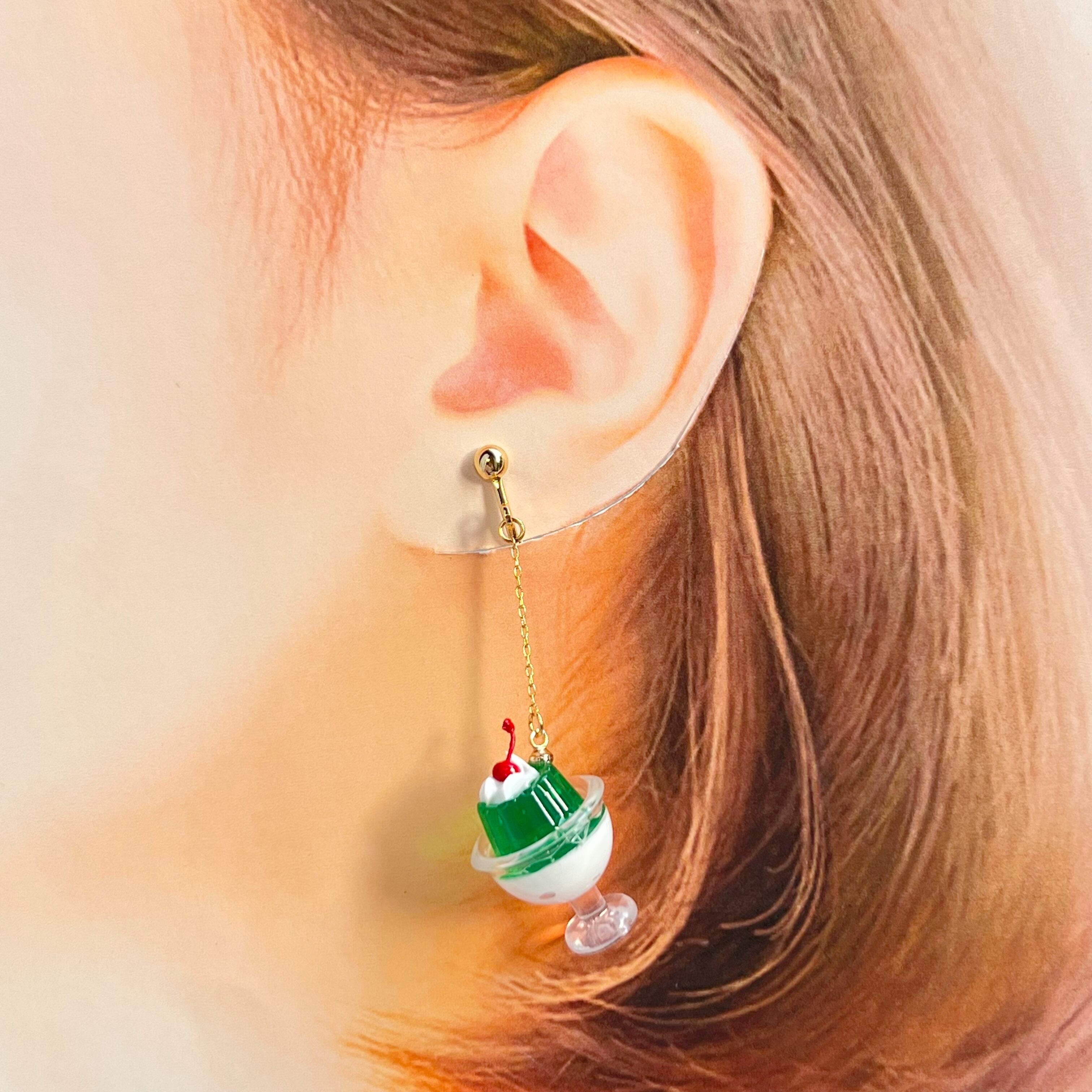 【片耳販売】レトロ可愛いミニチュアゼリーのピアス イヤリング イヤーカフ チャーム 喫茶店