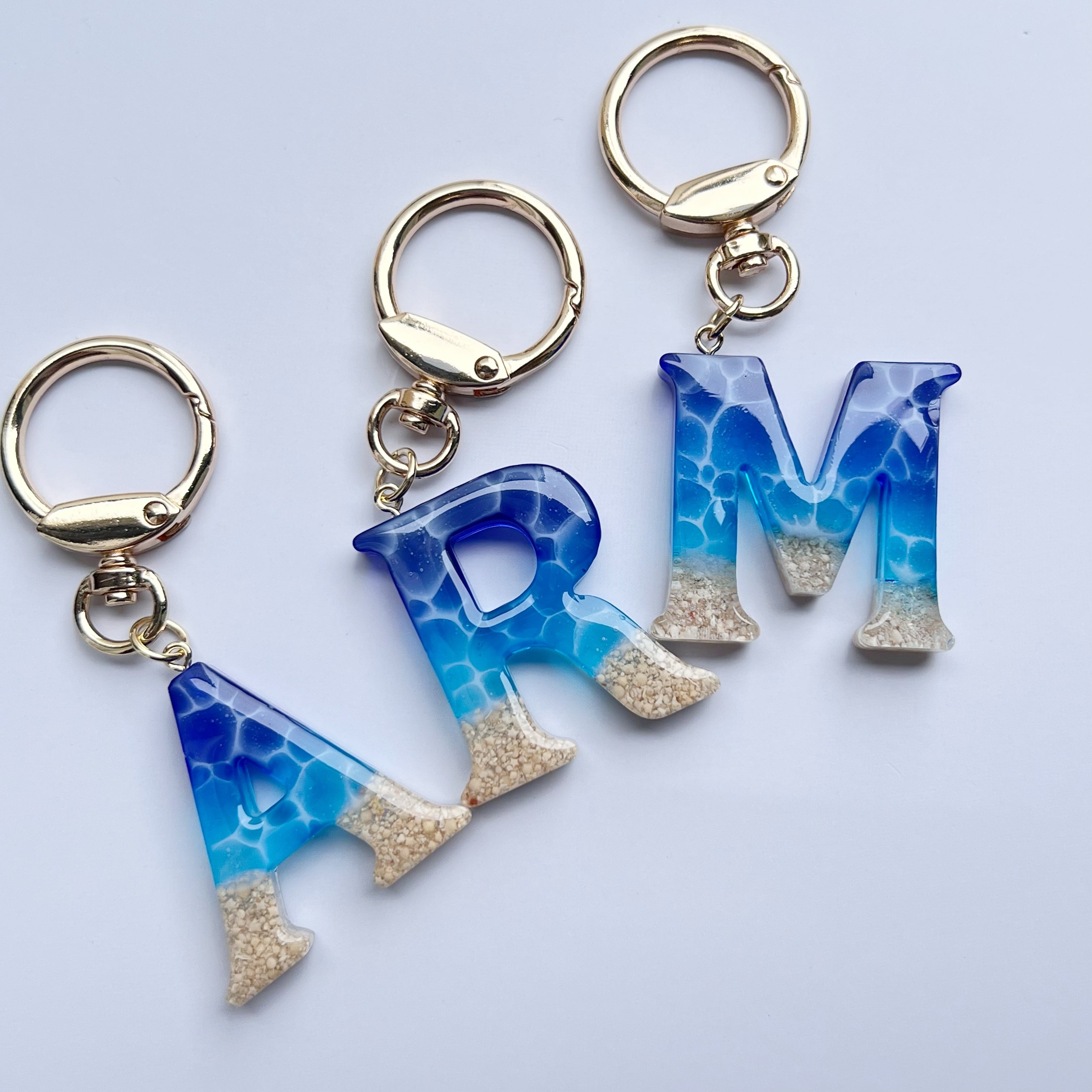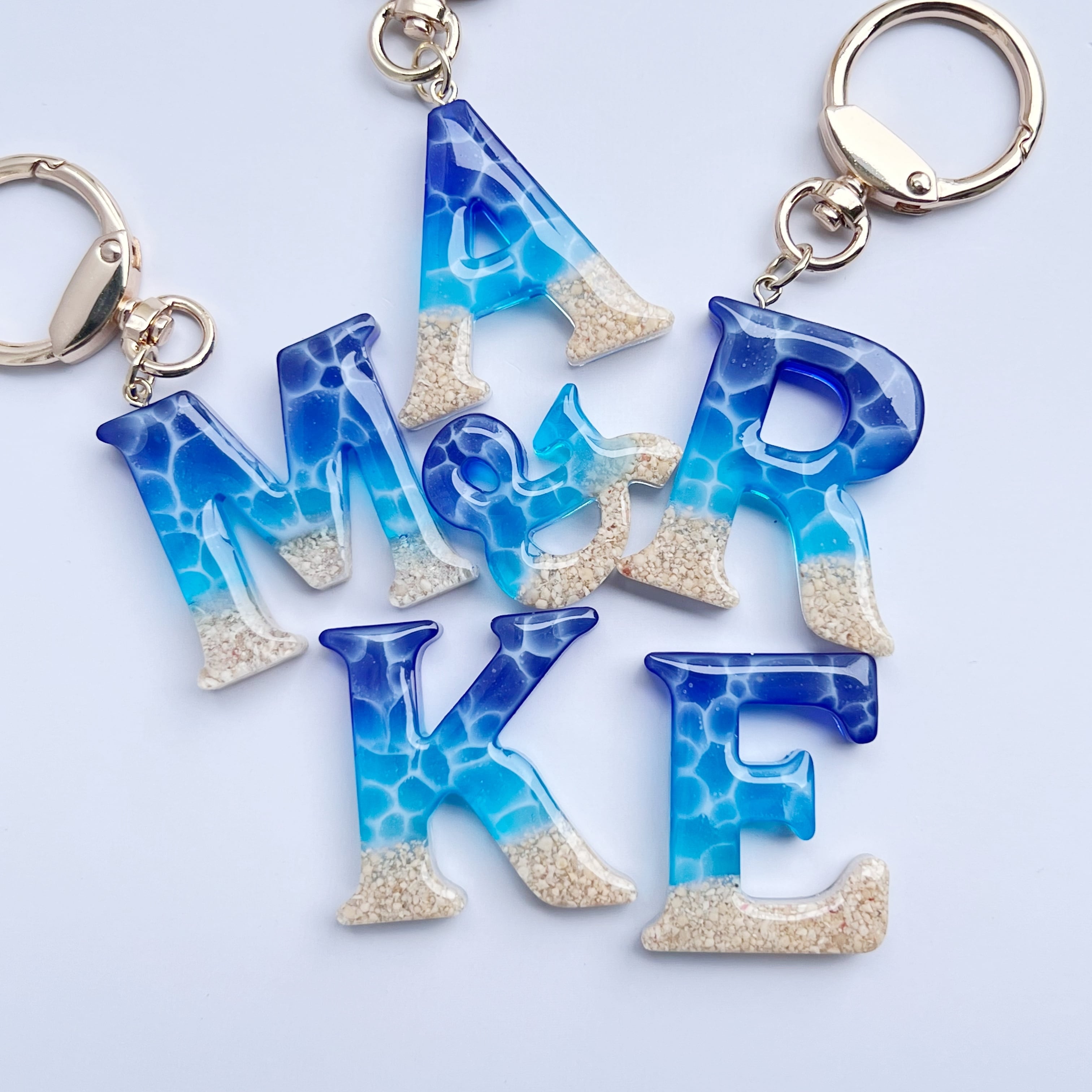 海を切り取ったイニシャルキーホルダー キーリング 名入れ可能 アルファベット ネームキーホルダー 海塗り