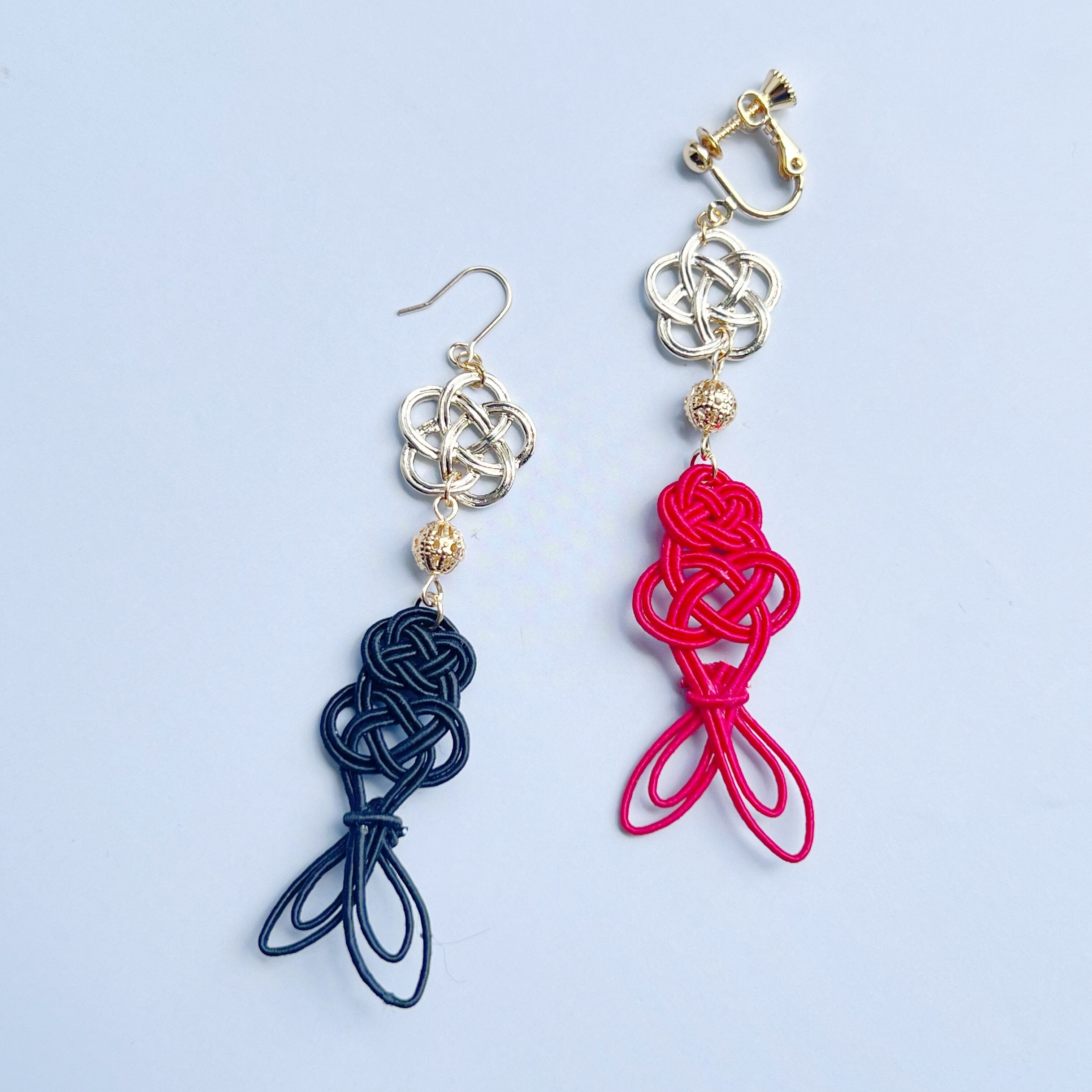 【片耳販売】選べる2色 水引金魚が泳ぐピアス イヤリング イヤーカフ ネックレス チャーム