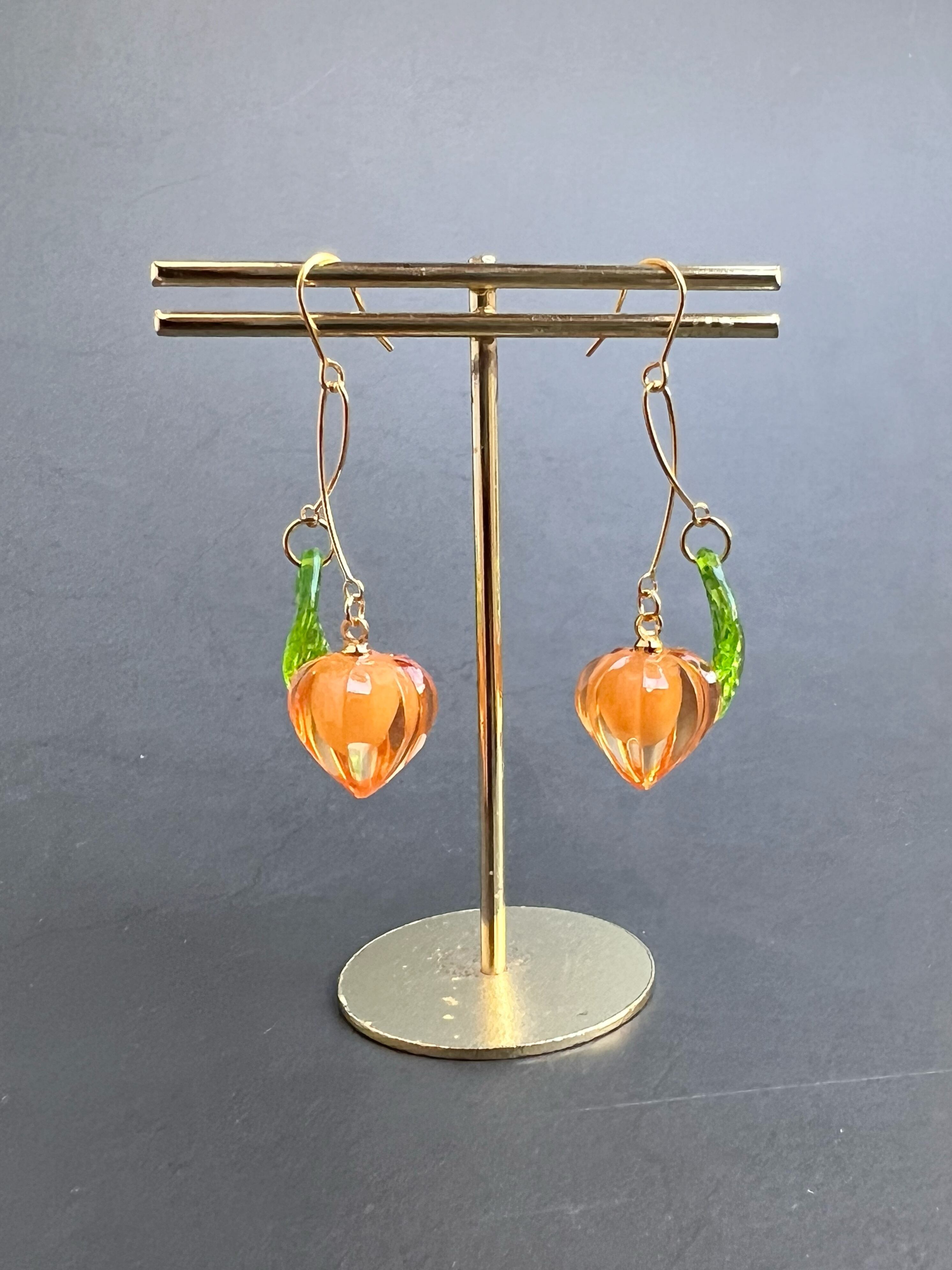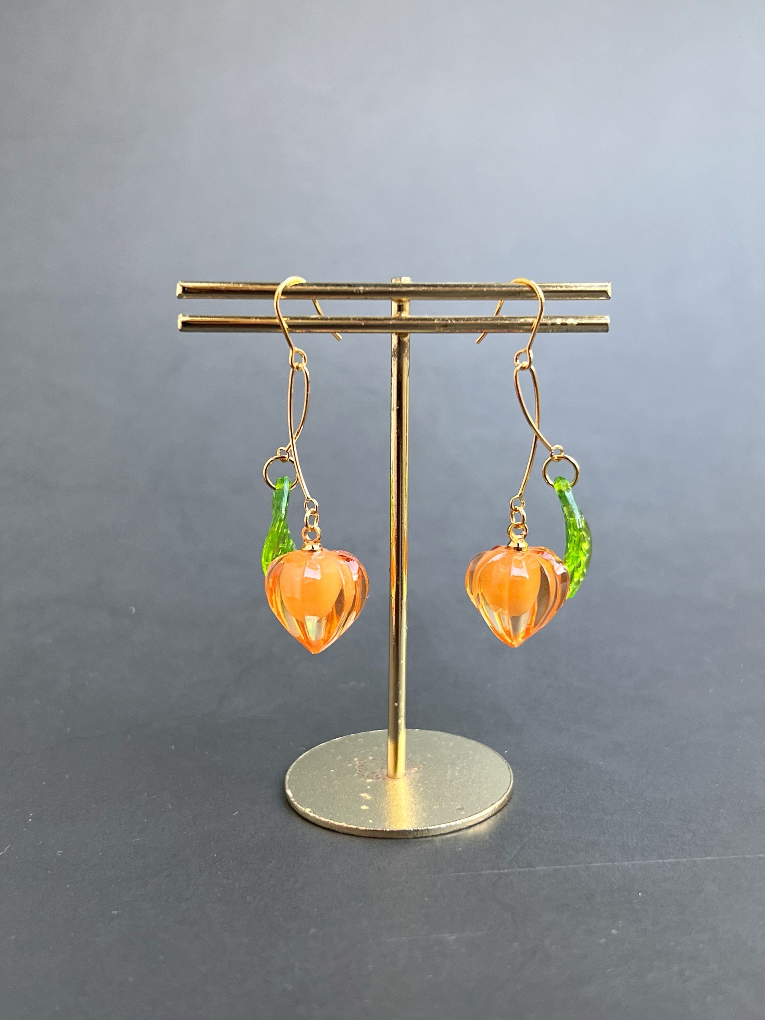 レジンで作った小さな鬼灯のピアス イヤリング