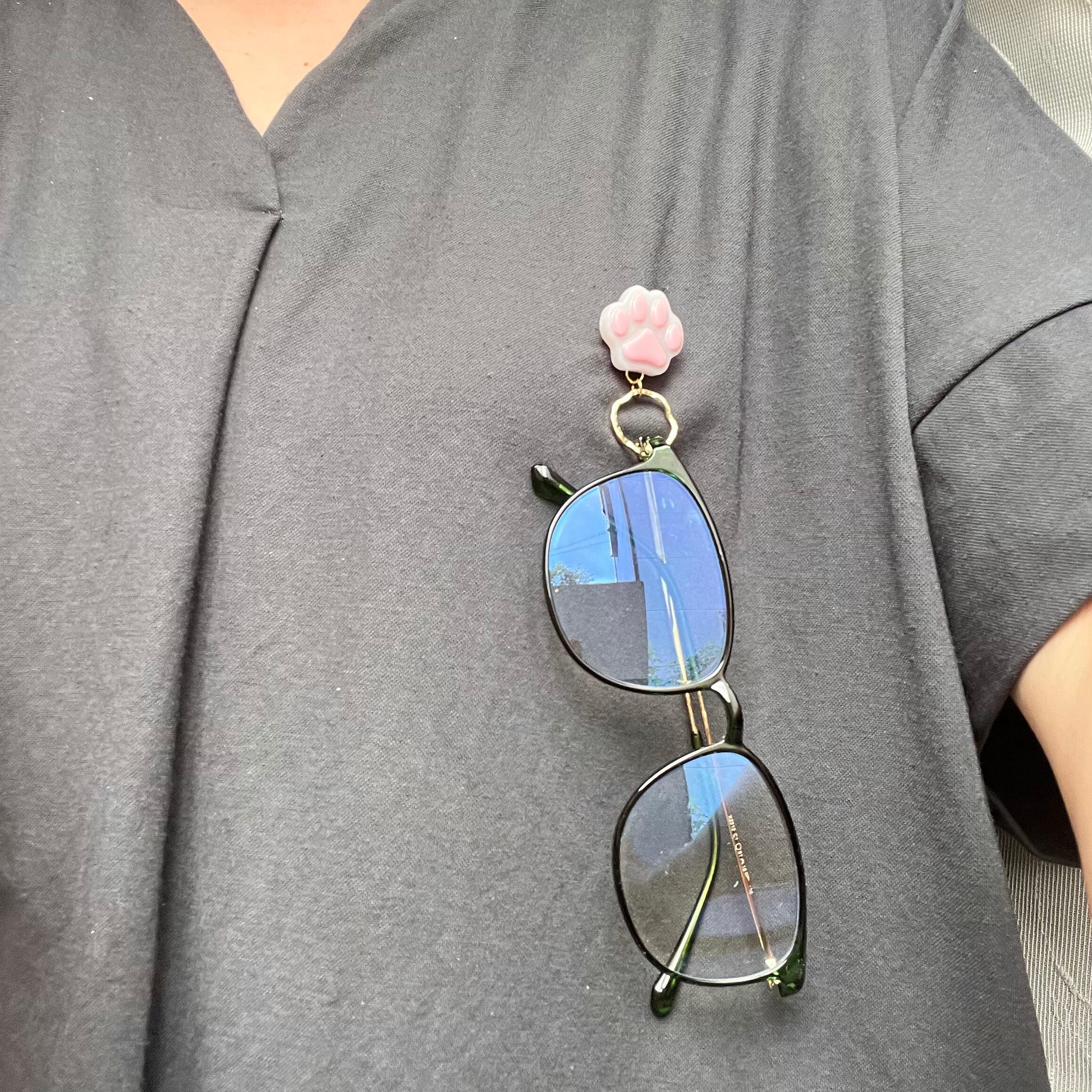 レジンで作った肉球モチーフのブローチ兼メガネホルダーです。