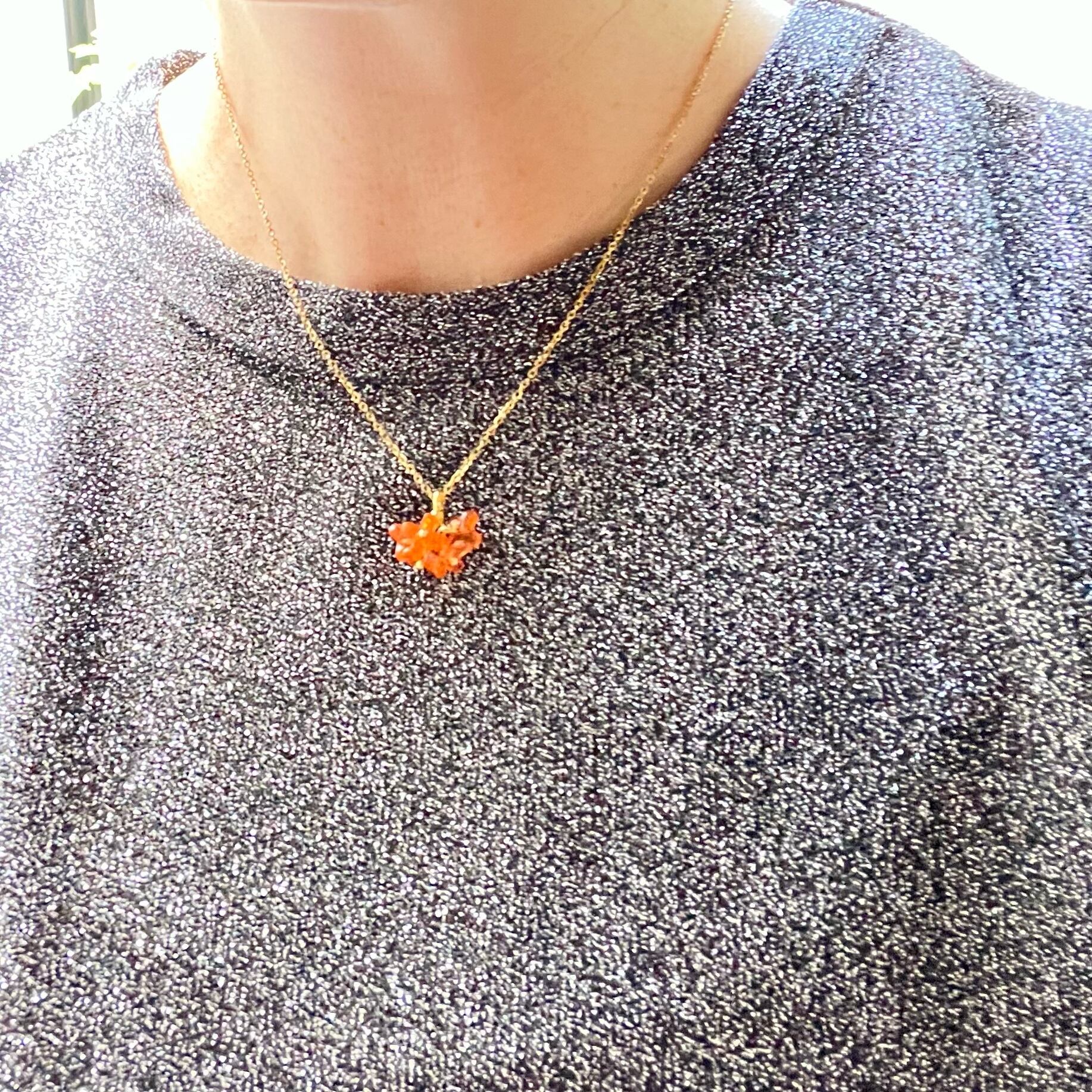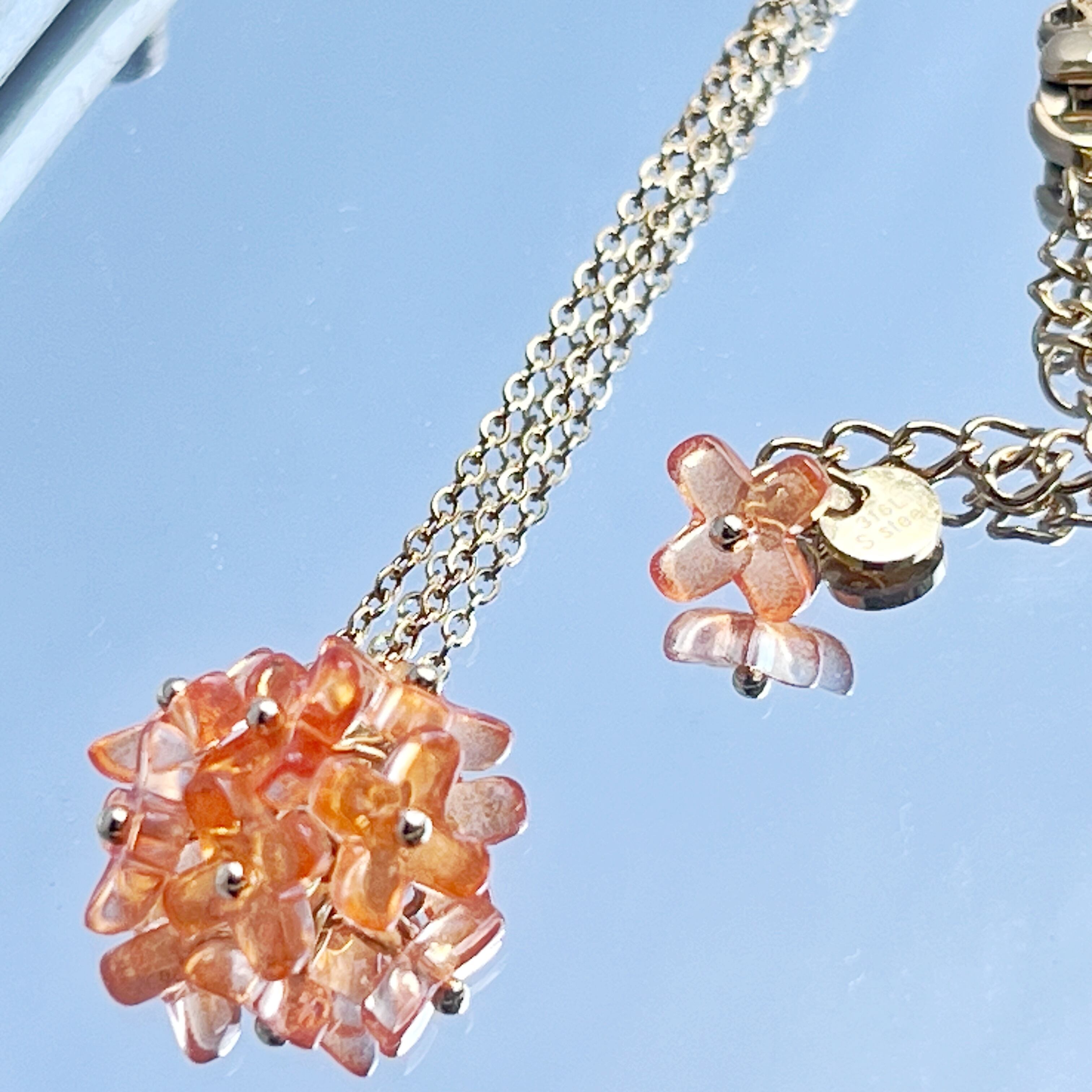 ガラスビーズでできたキンモクセイパーツ作った、シンプルなネックレスです。