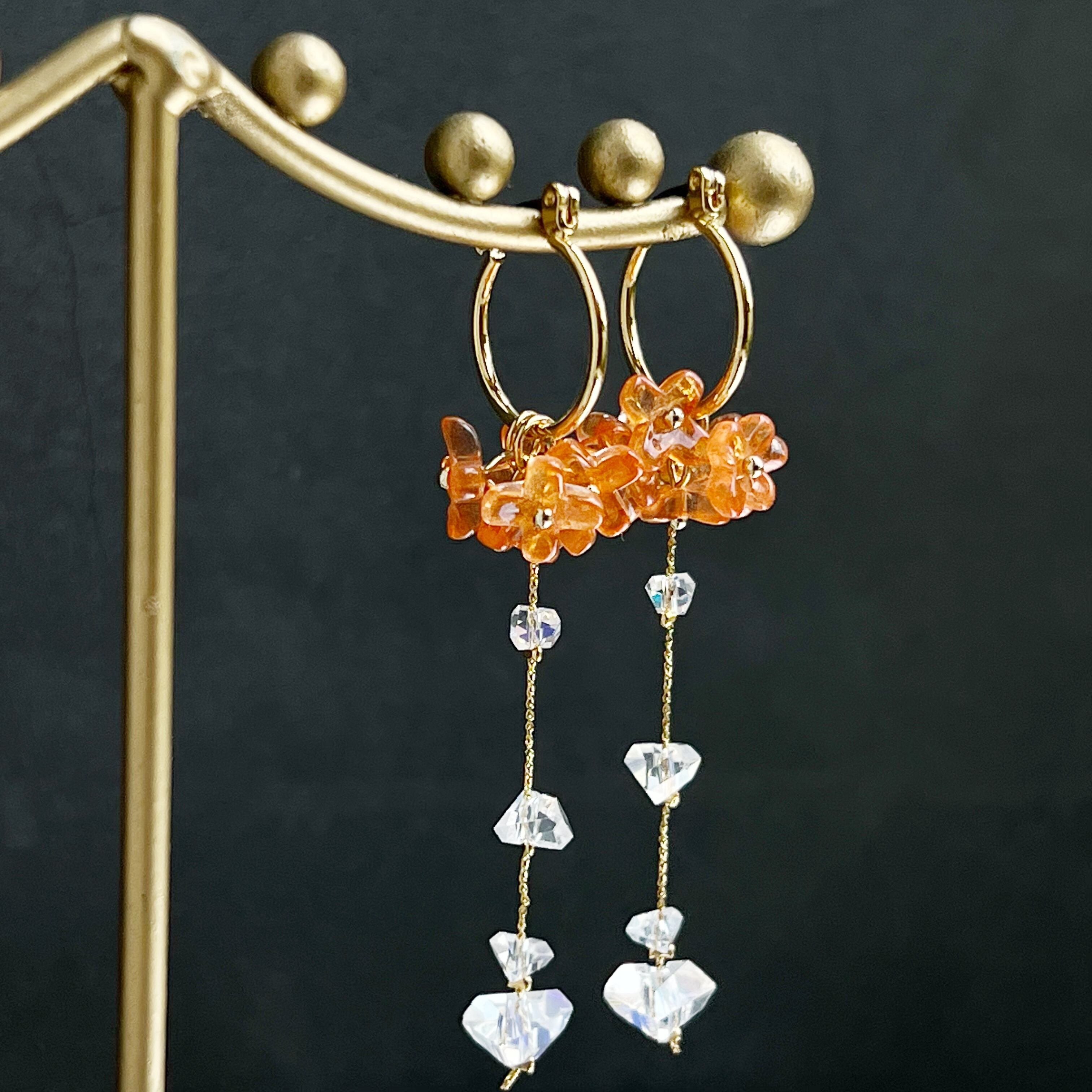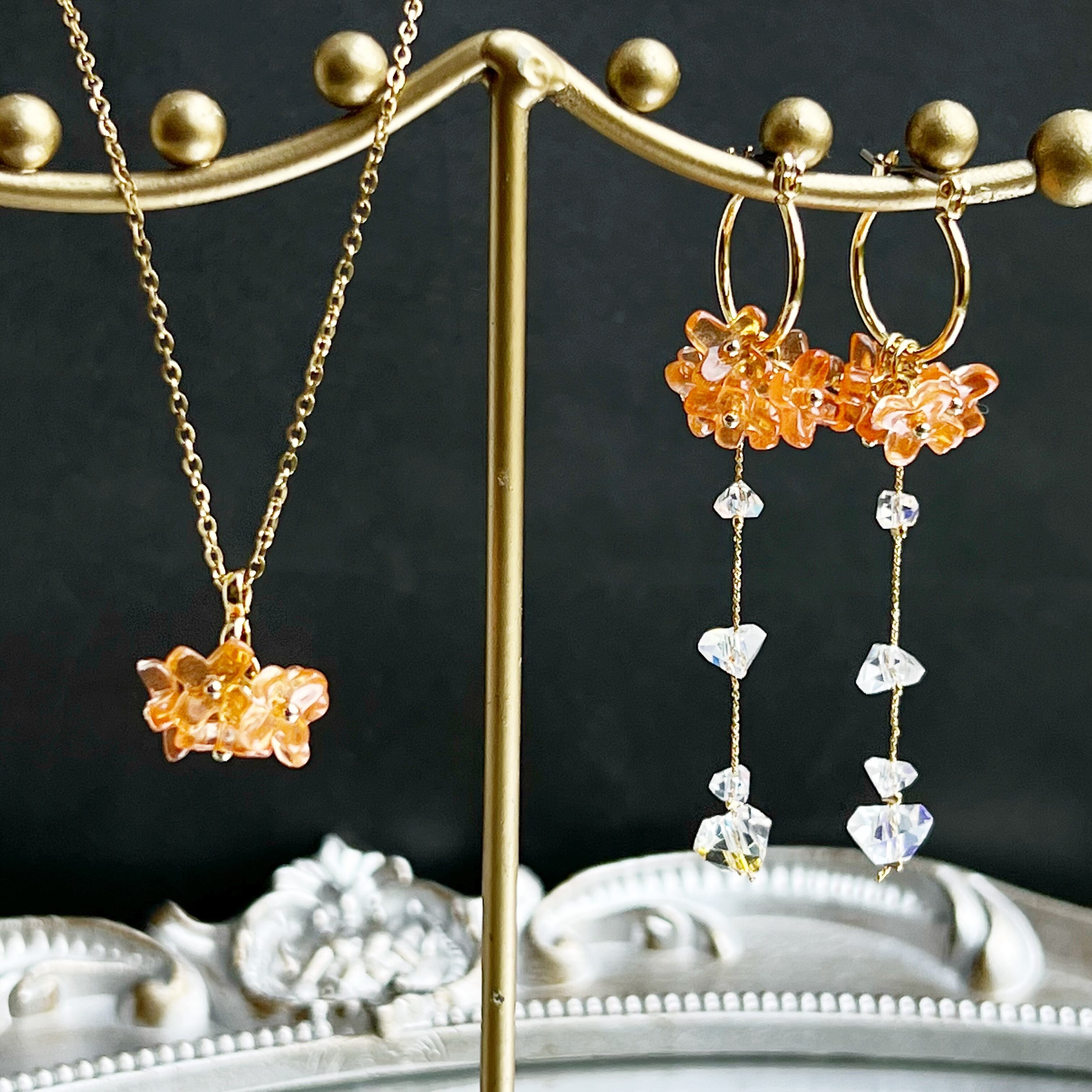【秋の福袋】4wayで愉しむ金木犀のフープピアスorイヤリング&サージカルステンレスネックレス2点セット