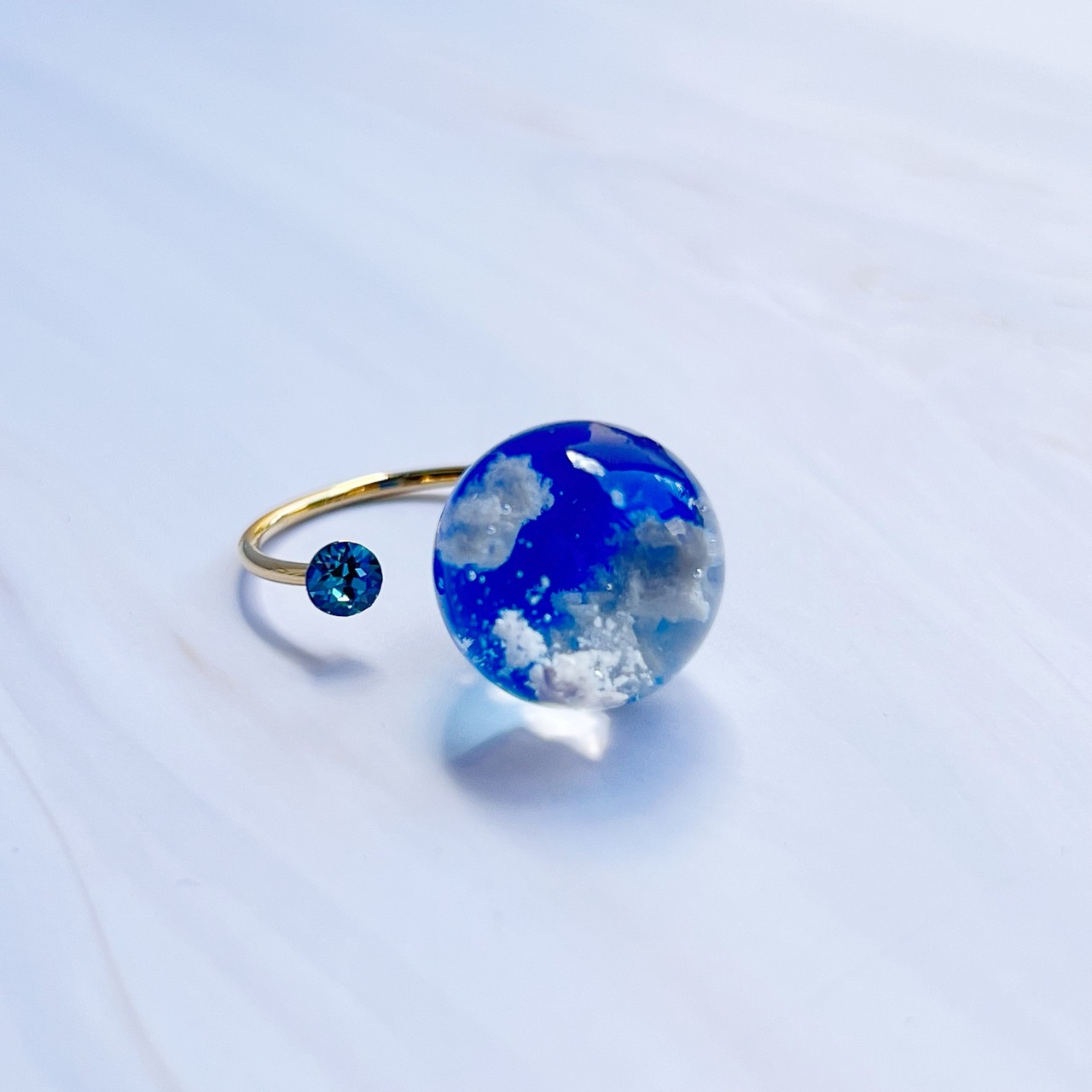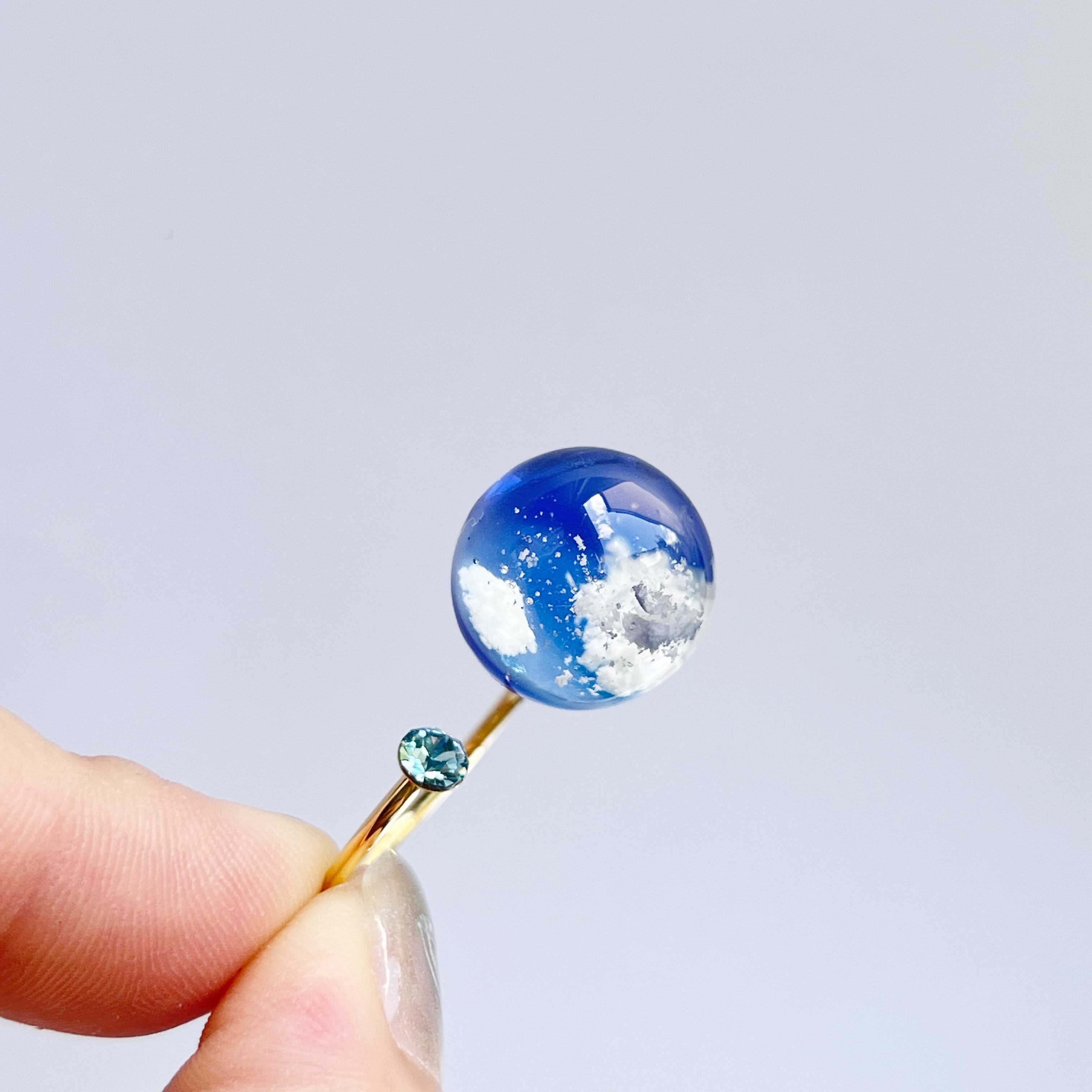 青空モチーフは身につけていて元気が出ます。また、空玉は見る角度によって様々な表情を見せてくれ、とても幻想的で見ていて飽きません。