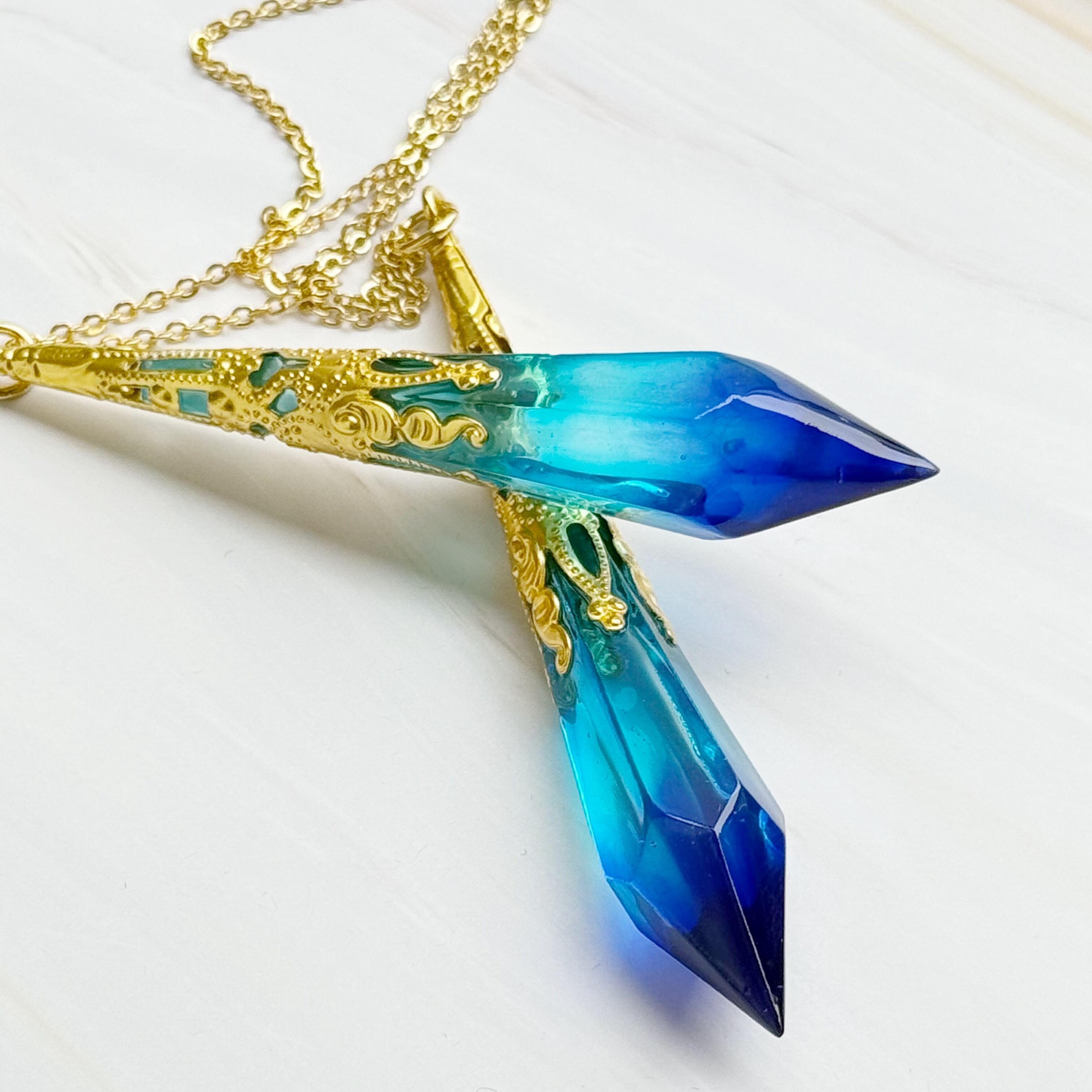 レジンで作った幻想的なペンデュラムのネックレスです。
