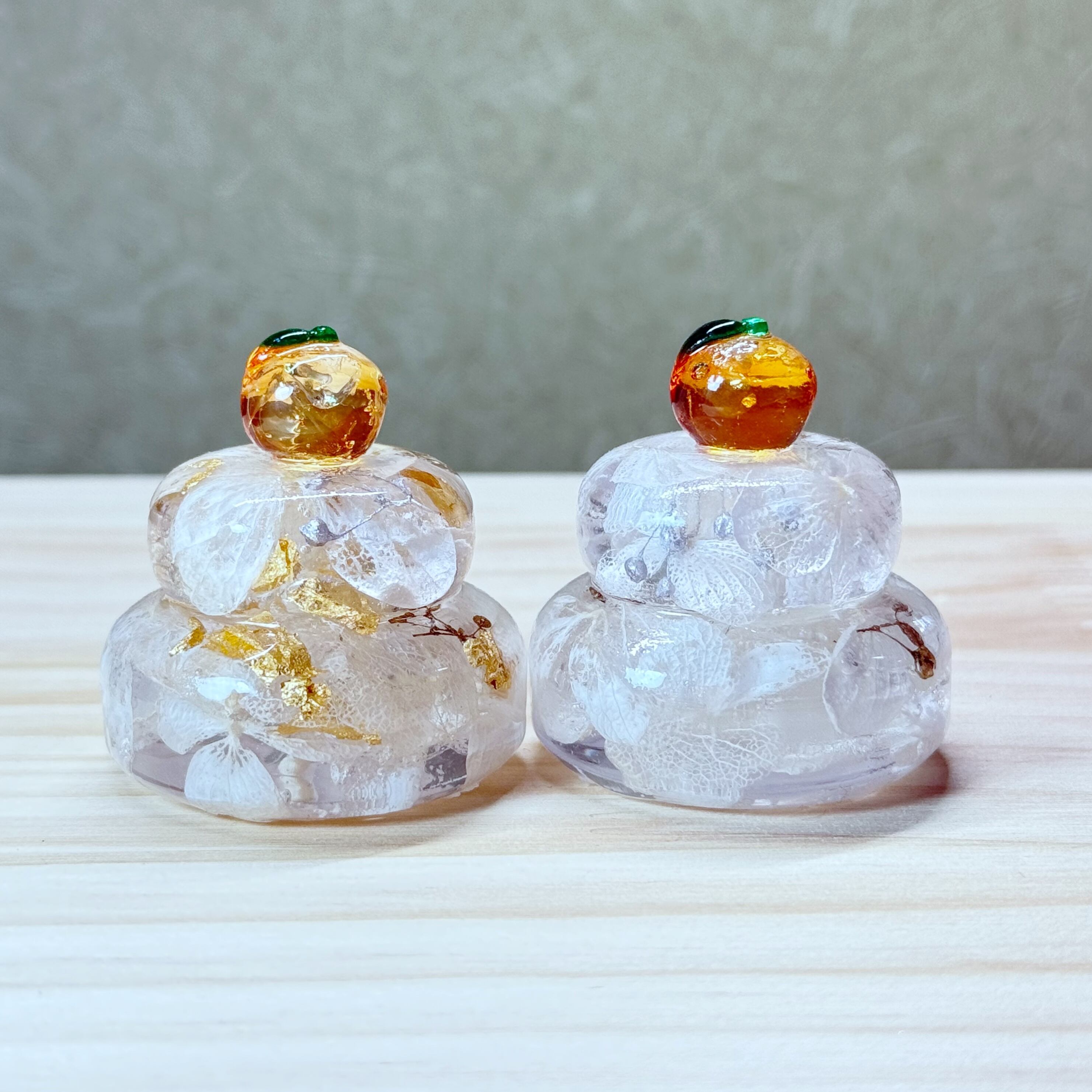 レジンでできた小さな鏡餅です。(結構小さめなのでサイズ必ずご確認下さい)