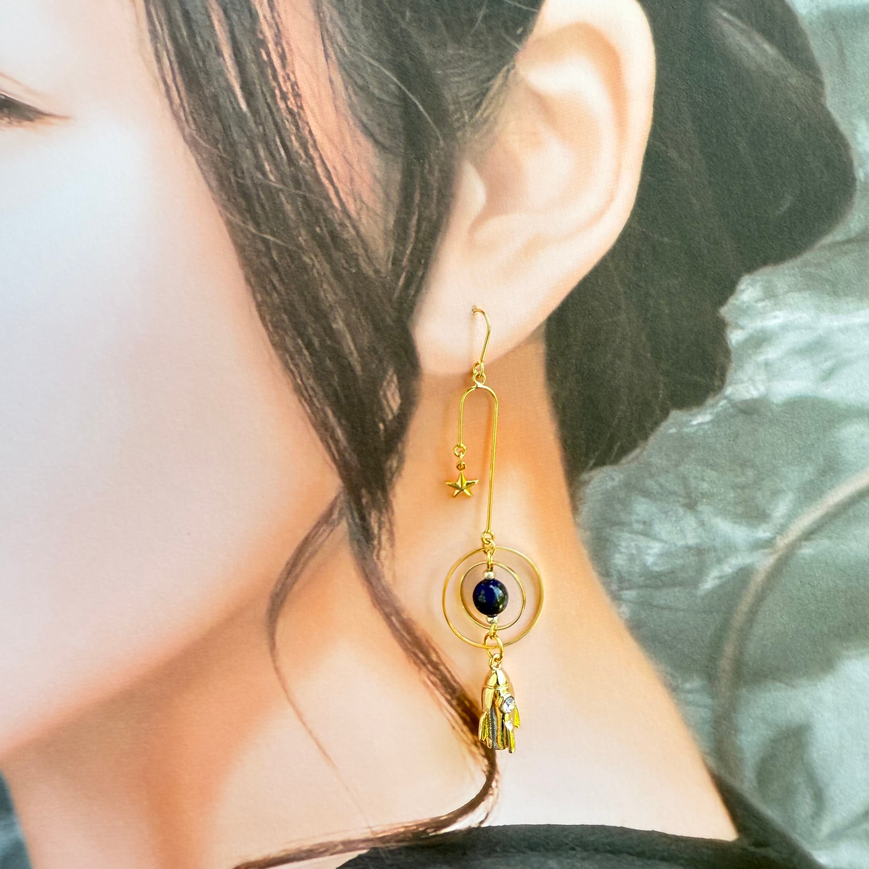宇宙飛行士とロケットが揺れる 宇宙遊泳ピアス イヤリング ラピスラズリ