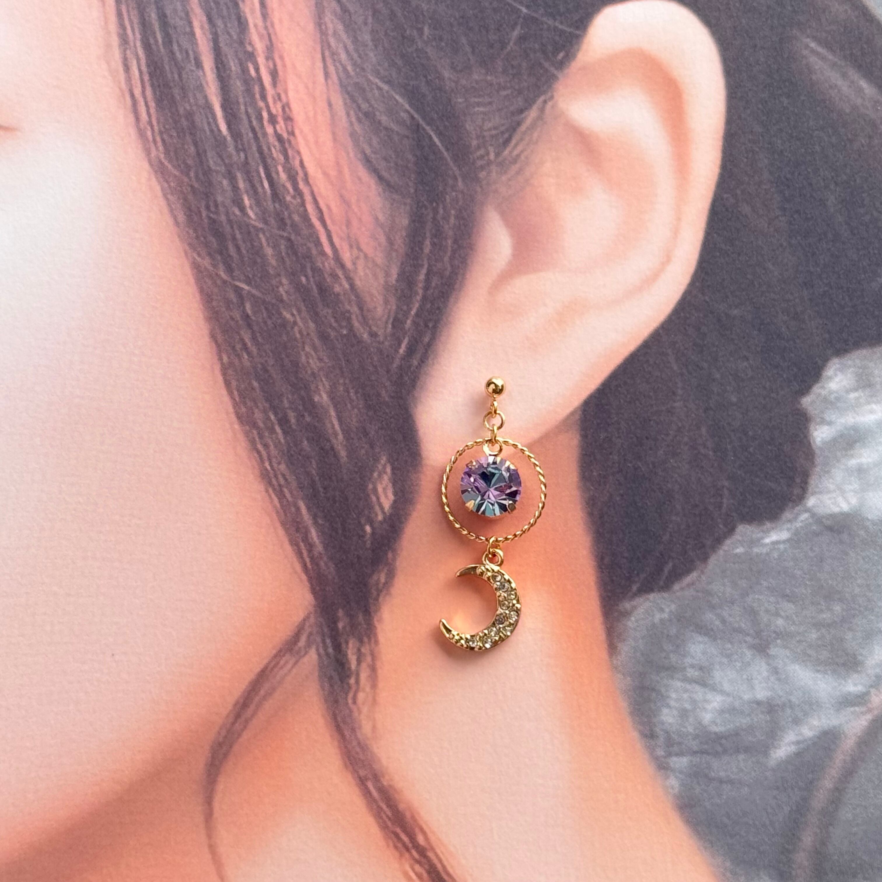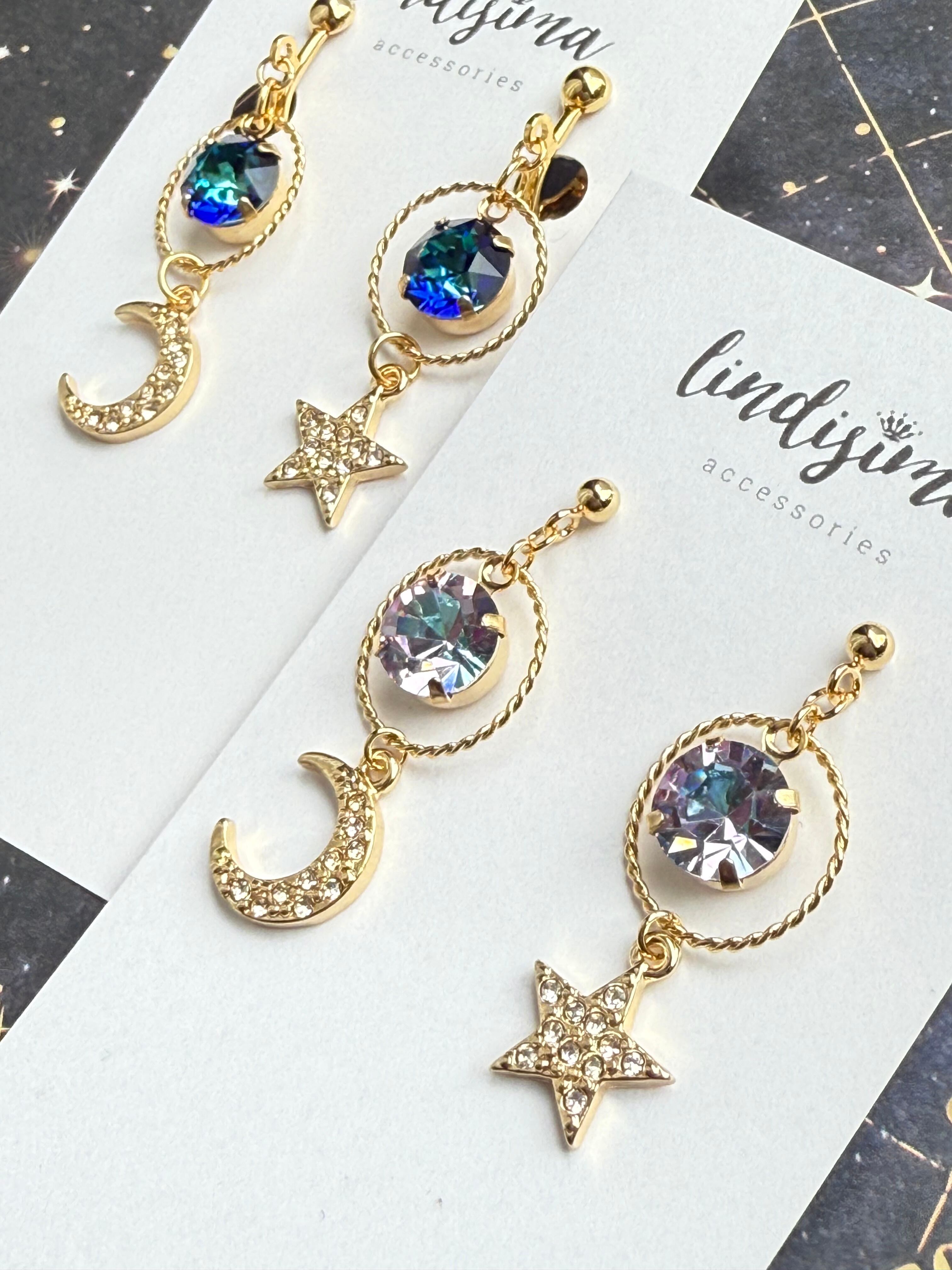 天体のロマンを日常に。煌めく星と月の耳飾りです。