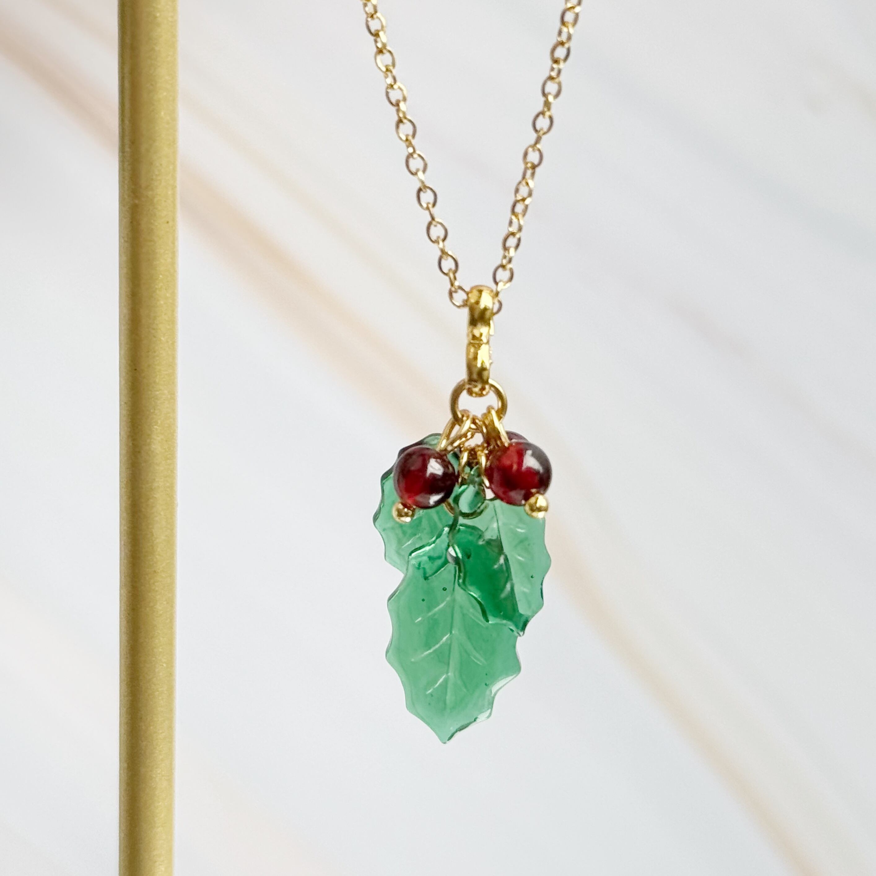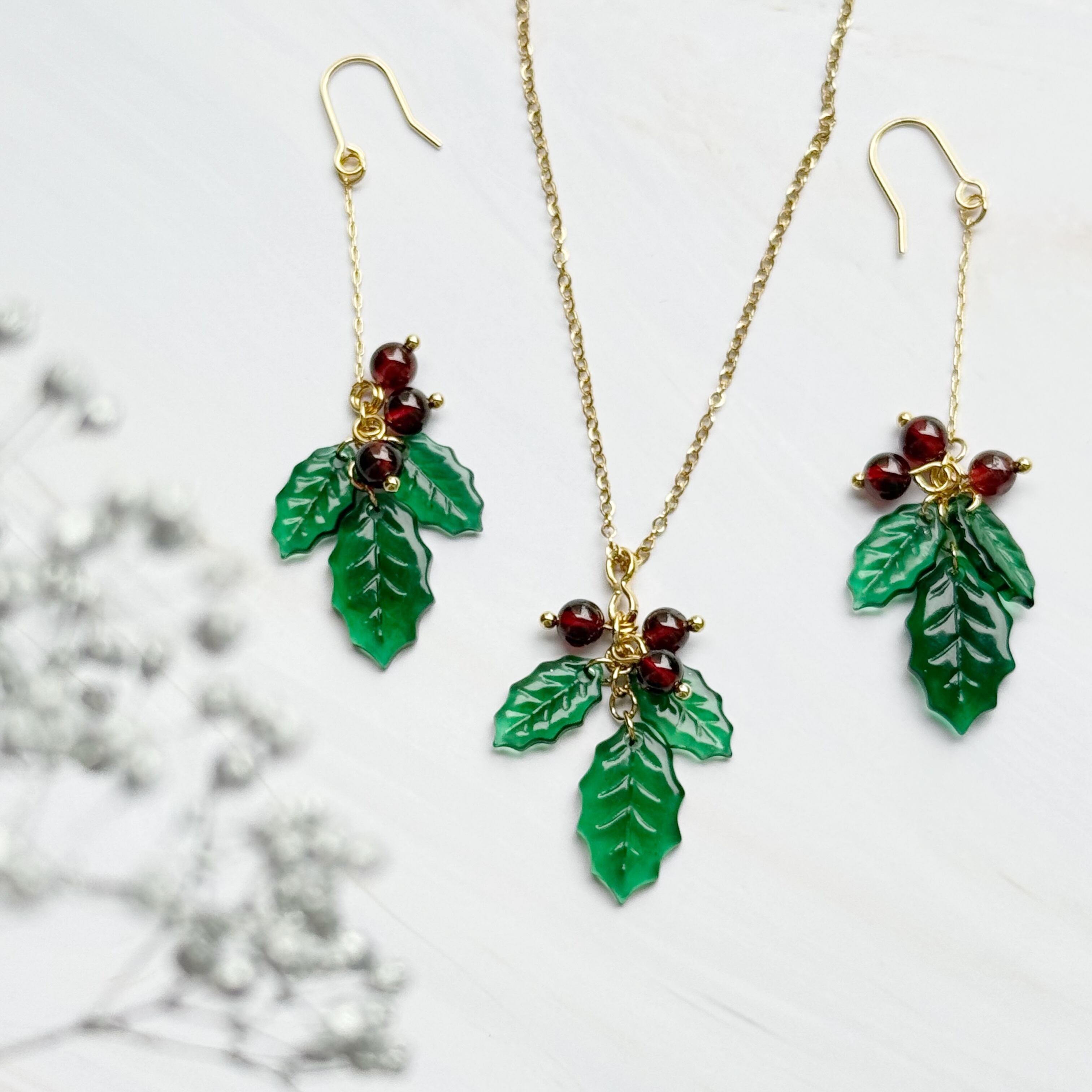 【ホリデーボックス】揺れる冬の煌めき エレガントな柊のピアスorイヤリング&ネックレス サージカルステンレス
