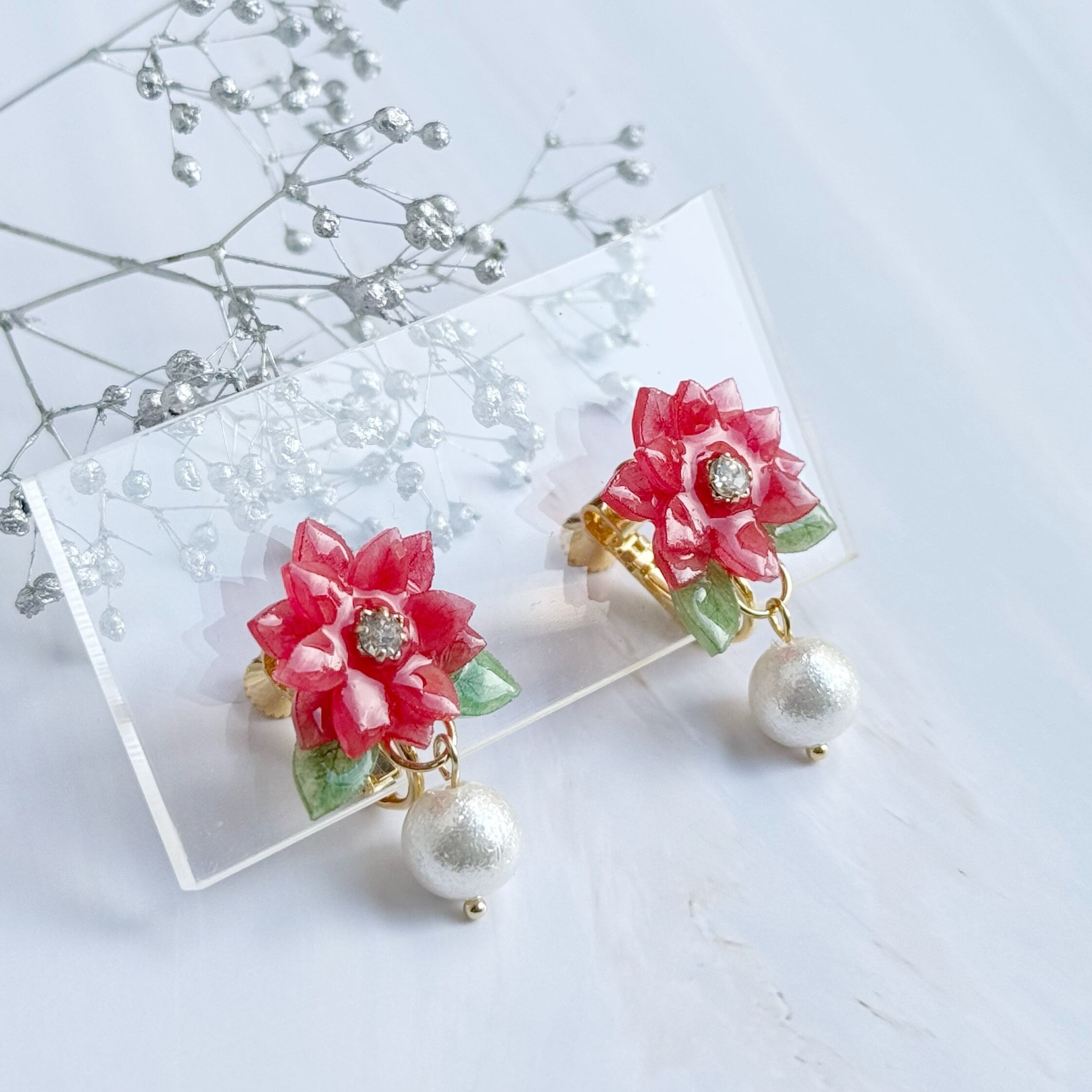 華やかな冬の花 煌めきのポインセチアピアス イヤリング