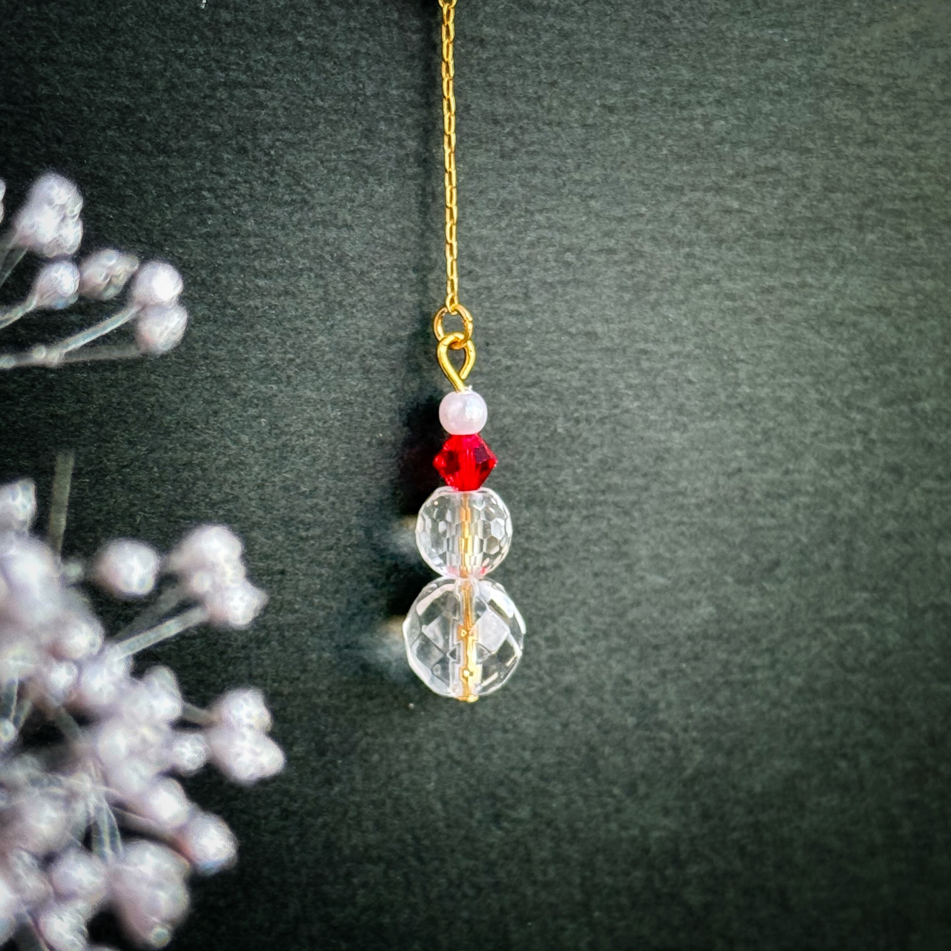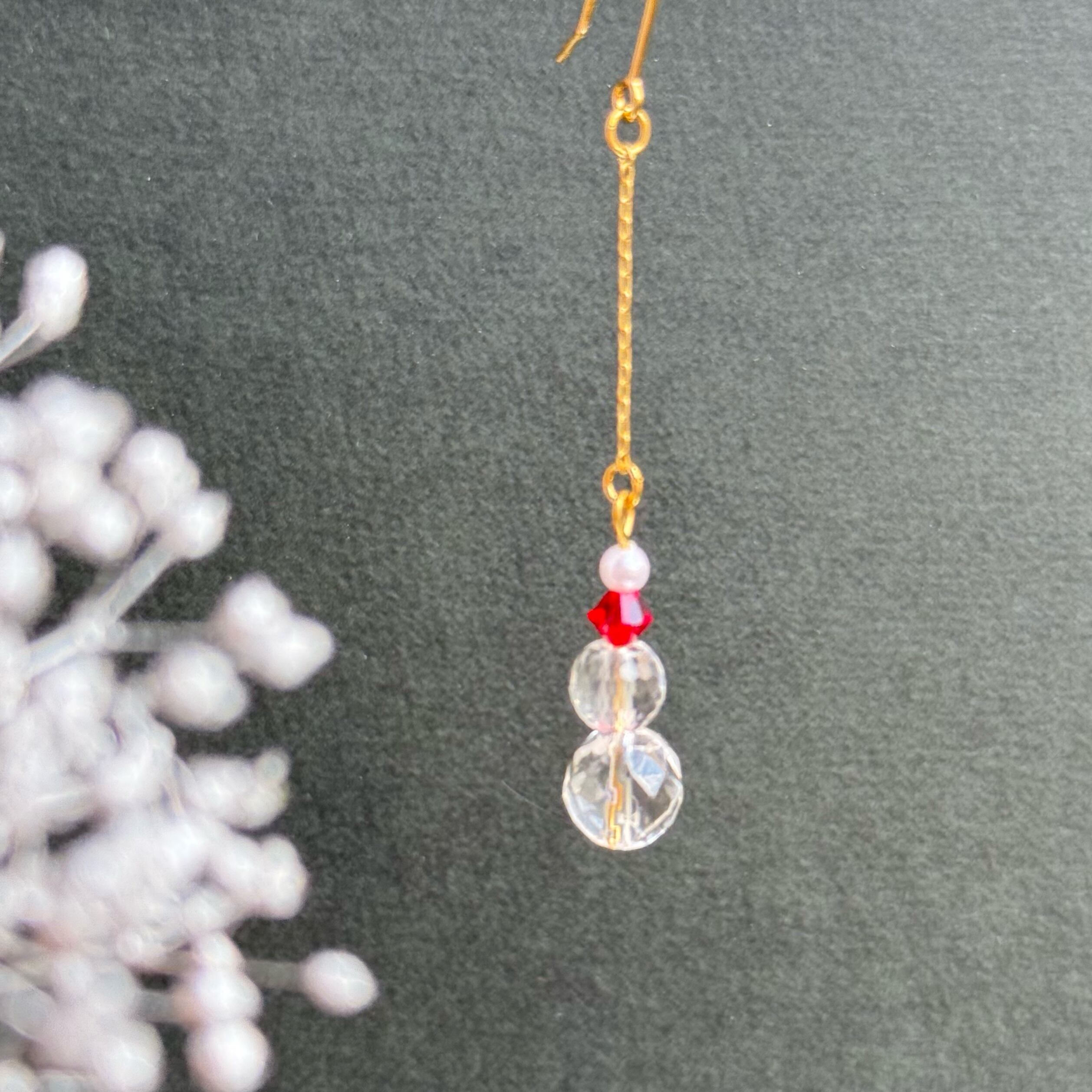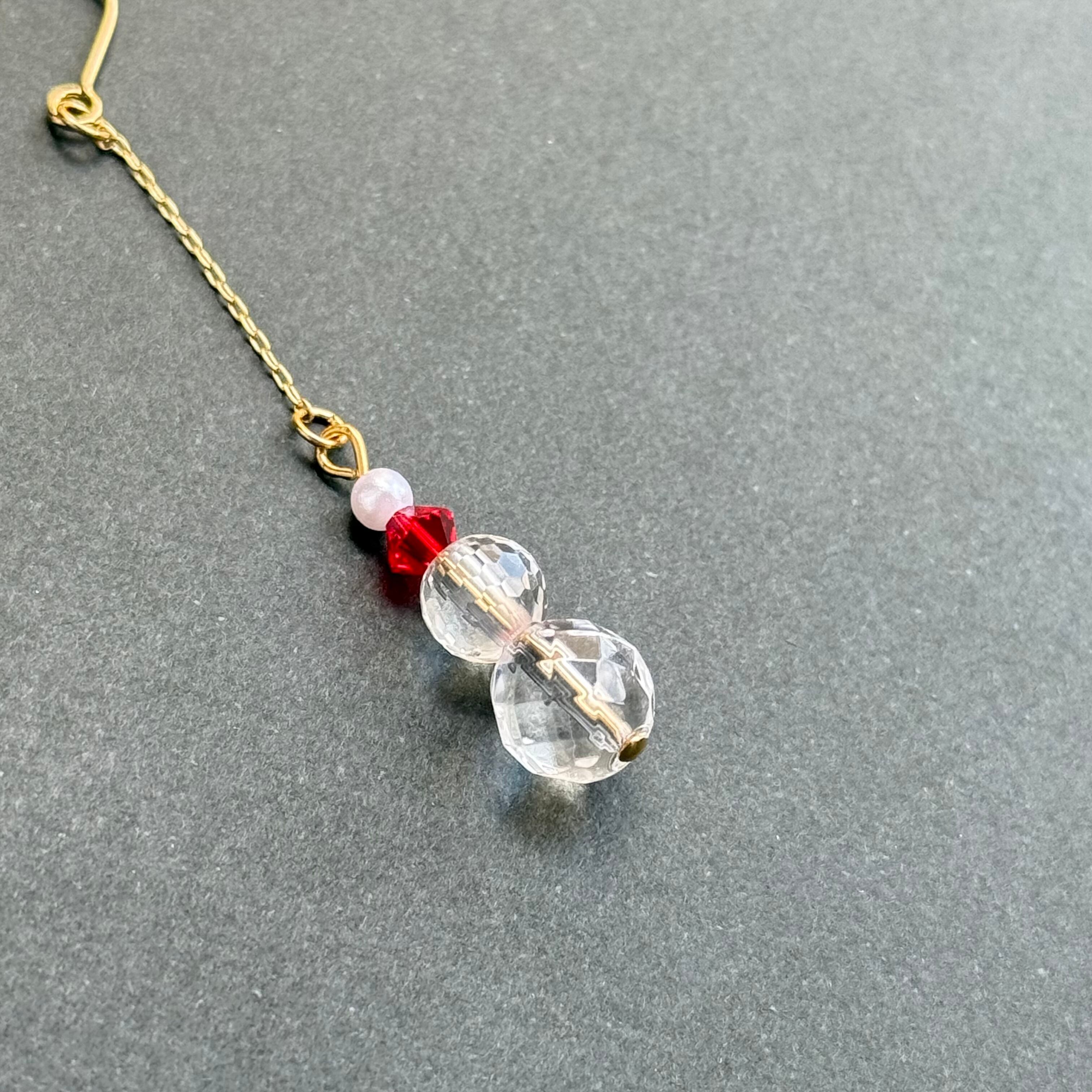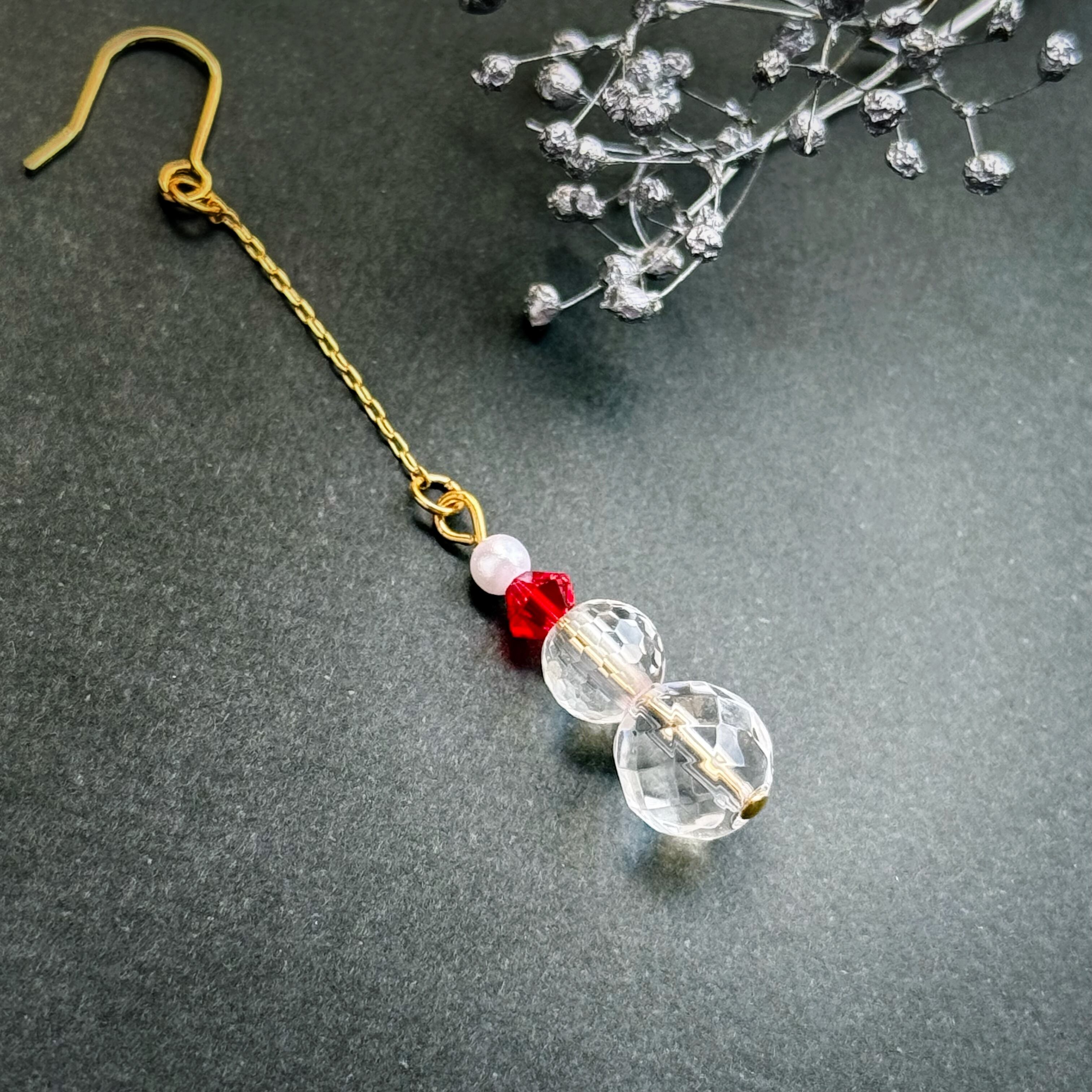 【片耳販売】クリスタルクォーツの雪だるまピアス イヤリング イヤーカフ ネックレス 水晶