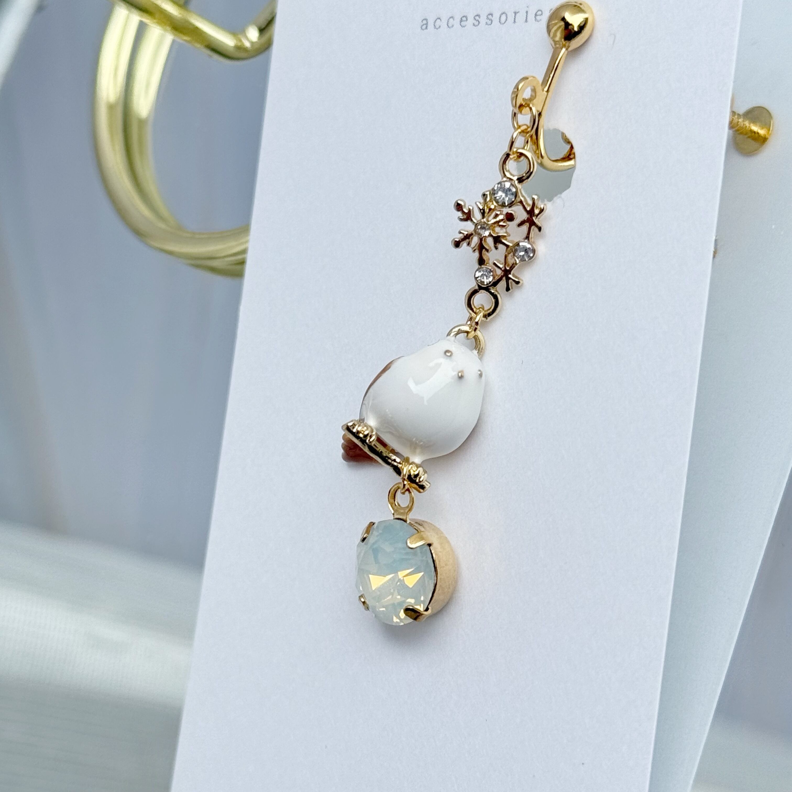 【片耳販売】シマエナガとクリスタルのピアス イヤリング