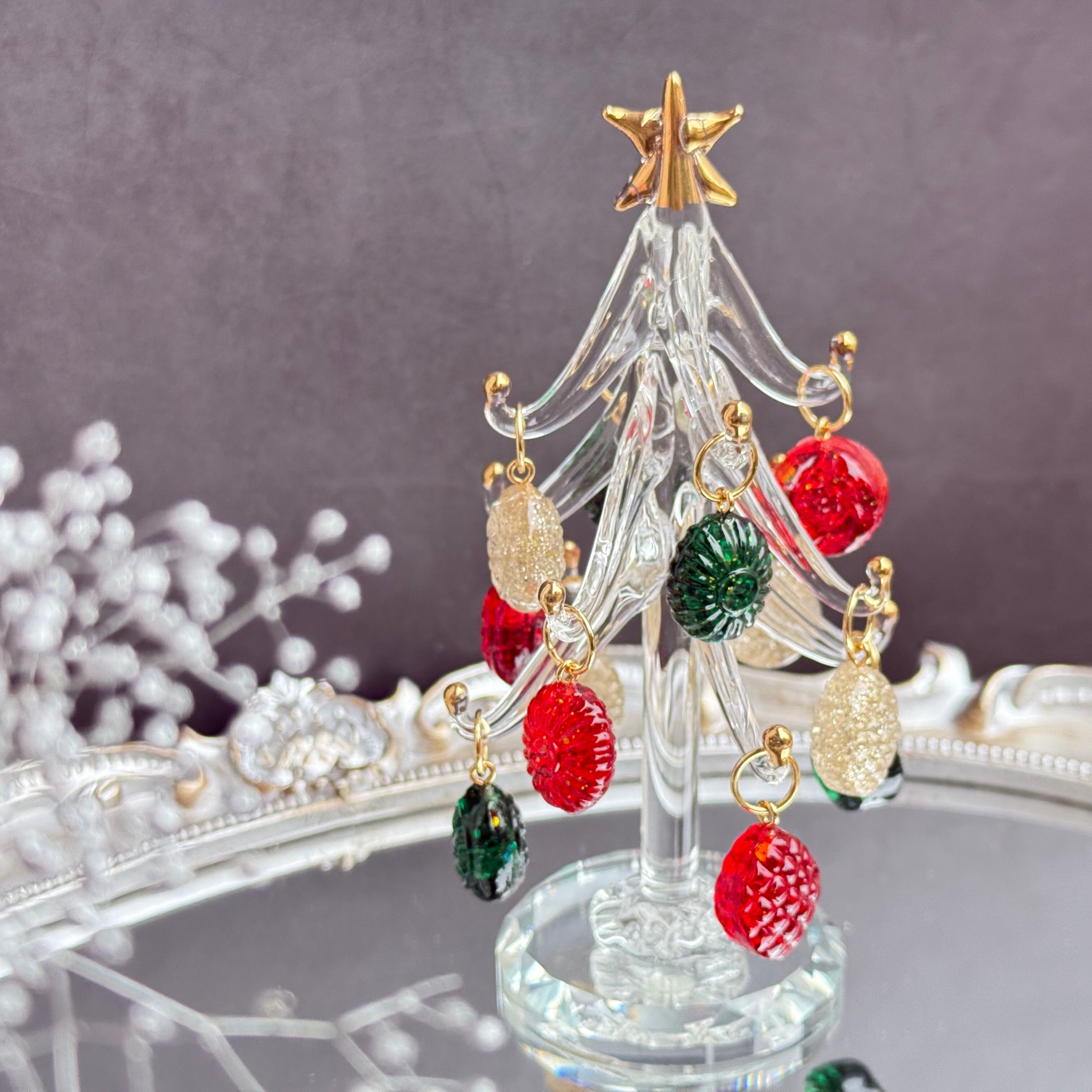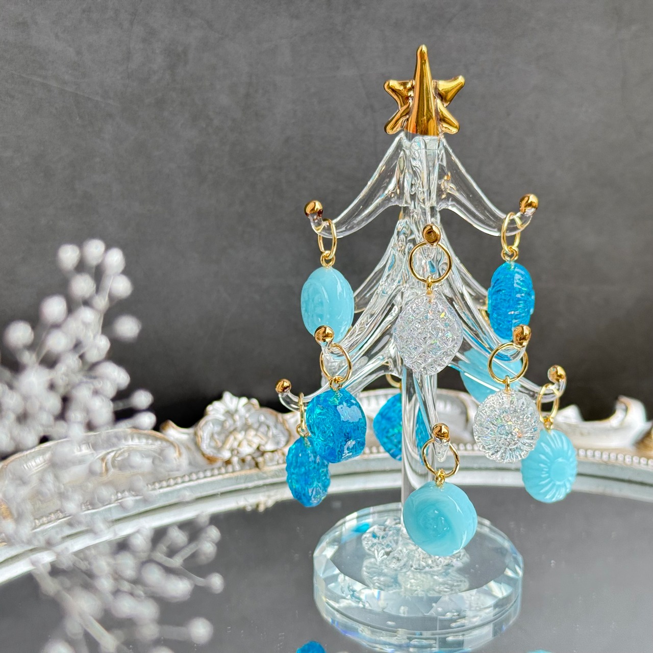 高さ13cmのガラスツリーにレジンで作ったドロップモチーフのオーナメントがついた、クリスマスインテリアです。