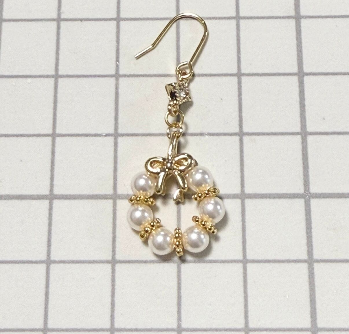 輝きの美しいクリスタルパールで作った小さなリースを、アクセサリーに仕上げました。