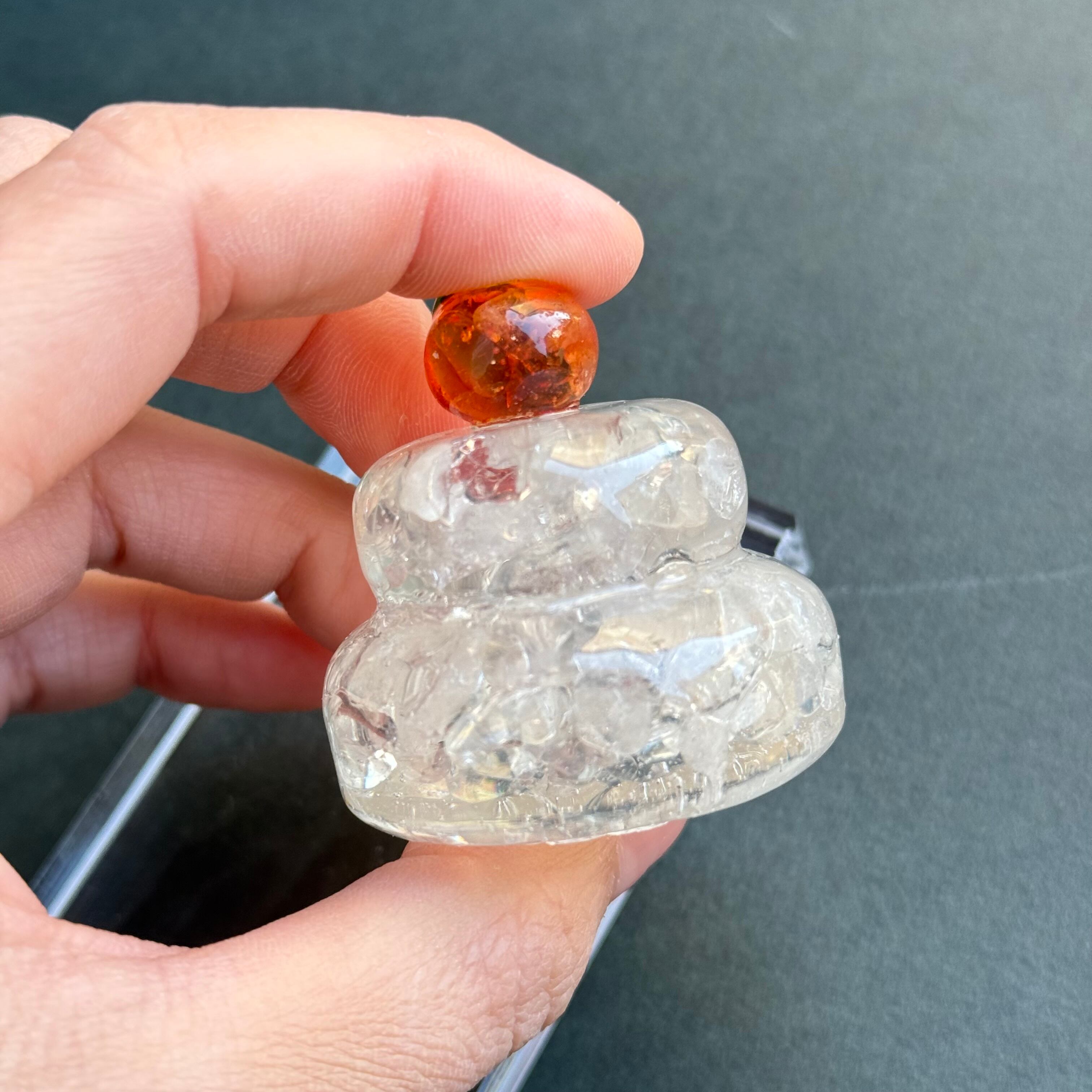 みかん部分は接着してあります。みかんにも水晶を閉じ込めてあります。