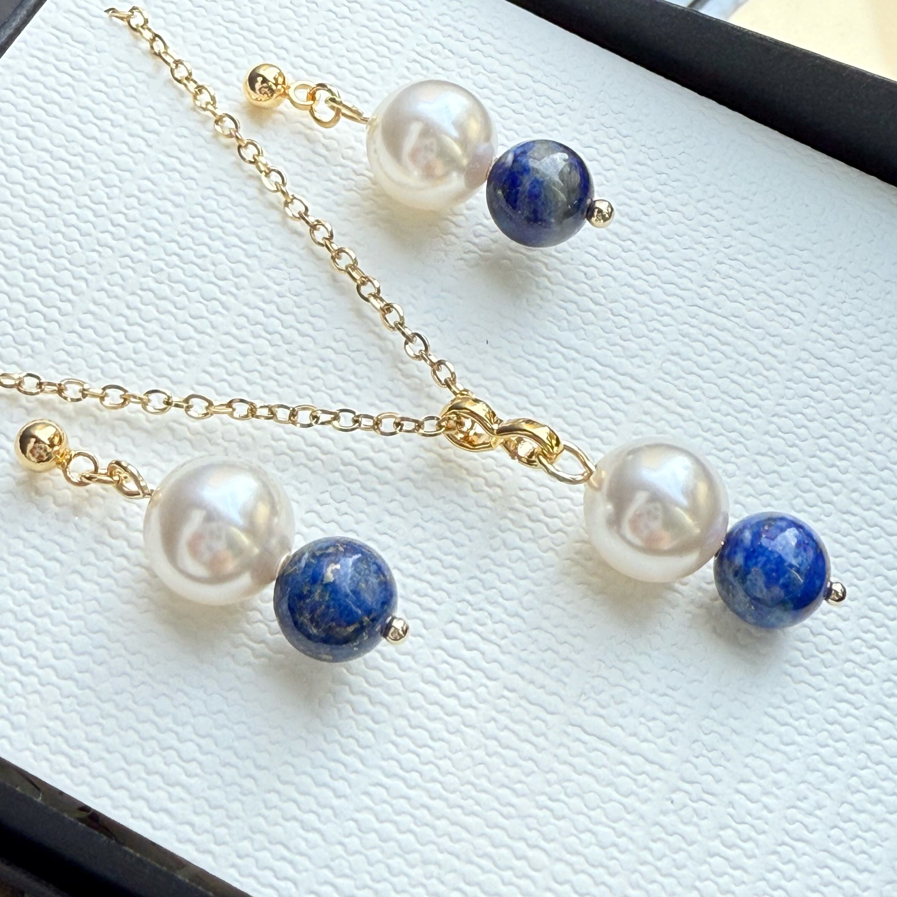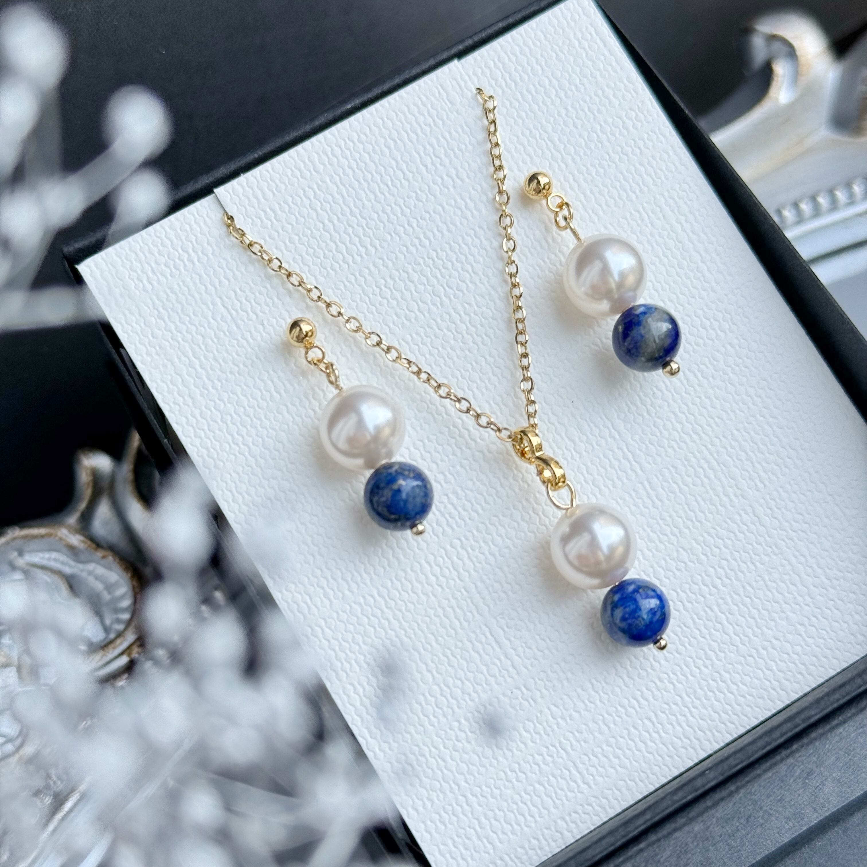 12月の誕生石ラピスラズリと、美しいクリスタルパールを使用したシンプルなアクセサリーです。