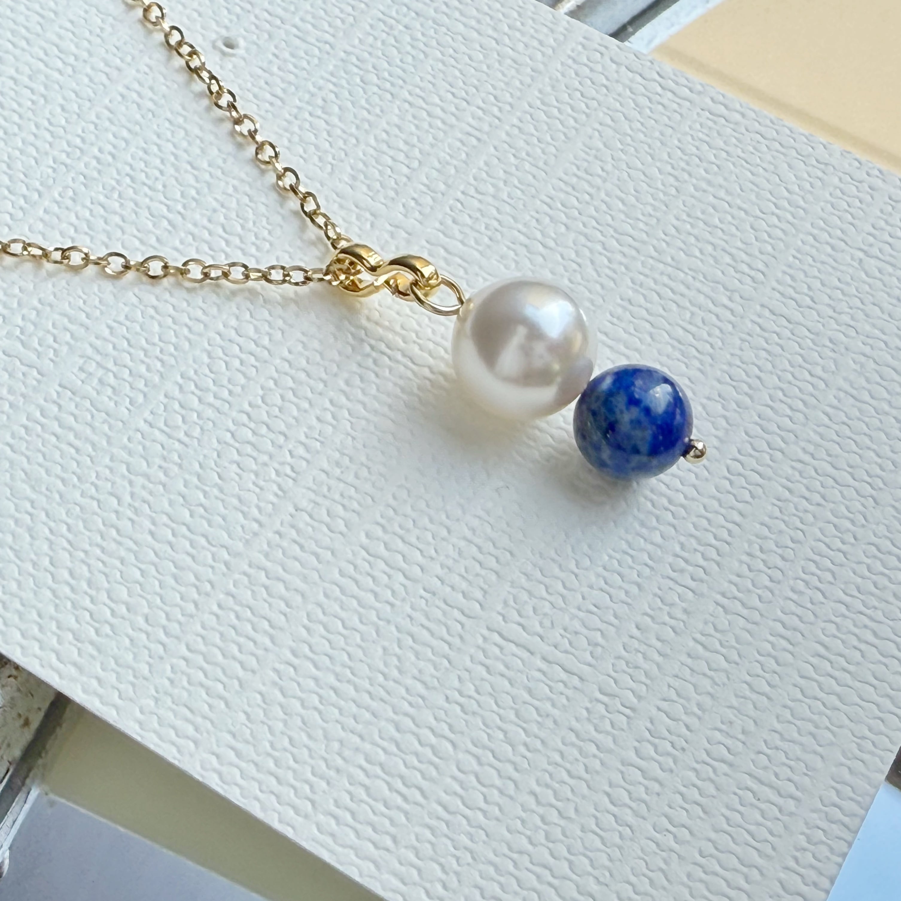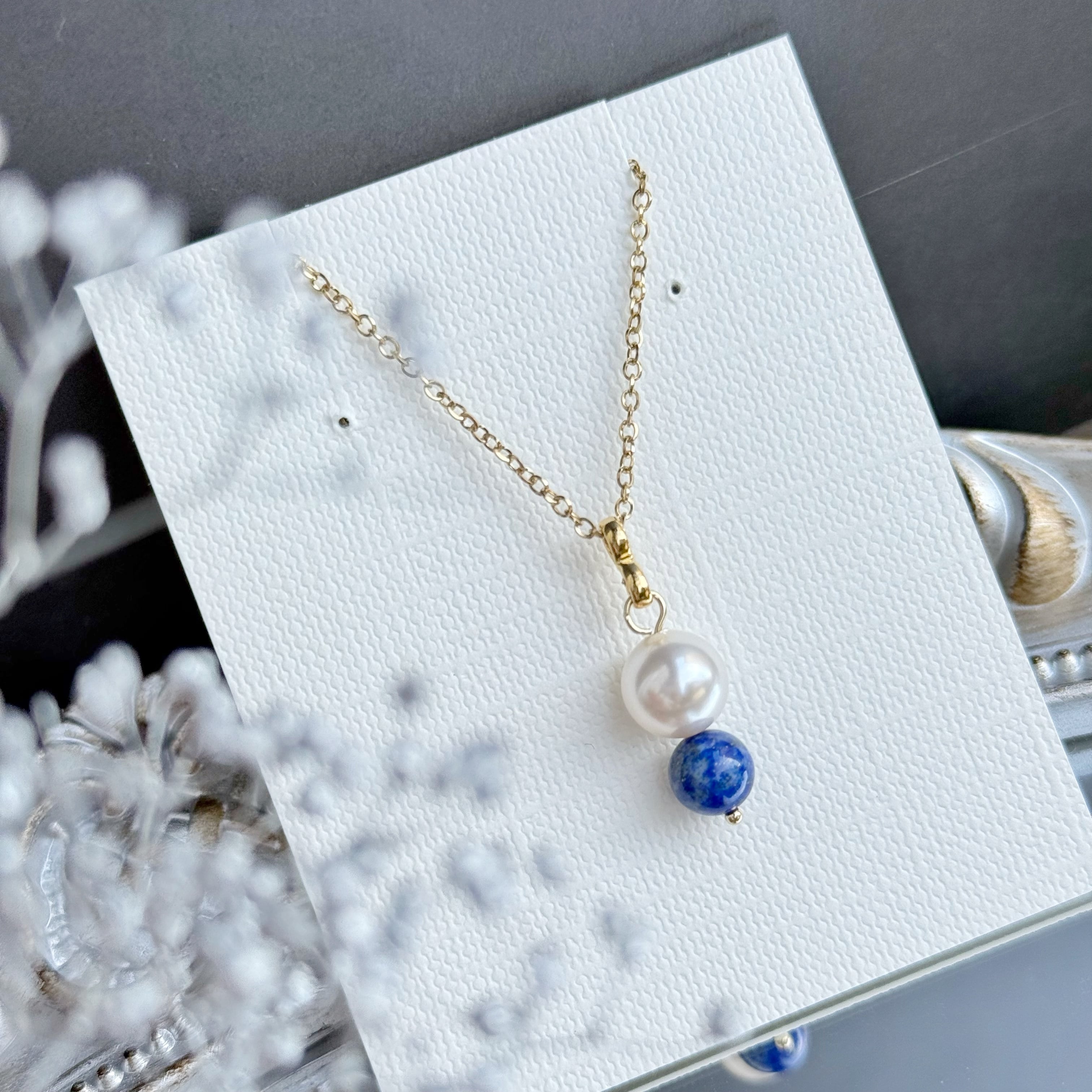12月の誕生石ラピスラズリと、美しいクリスタルパールを使用したシンプルなアクセサリーです。