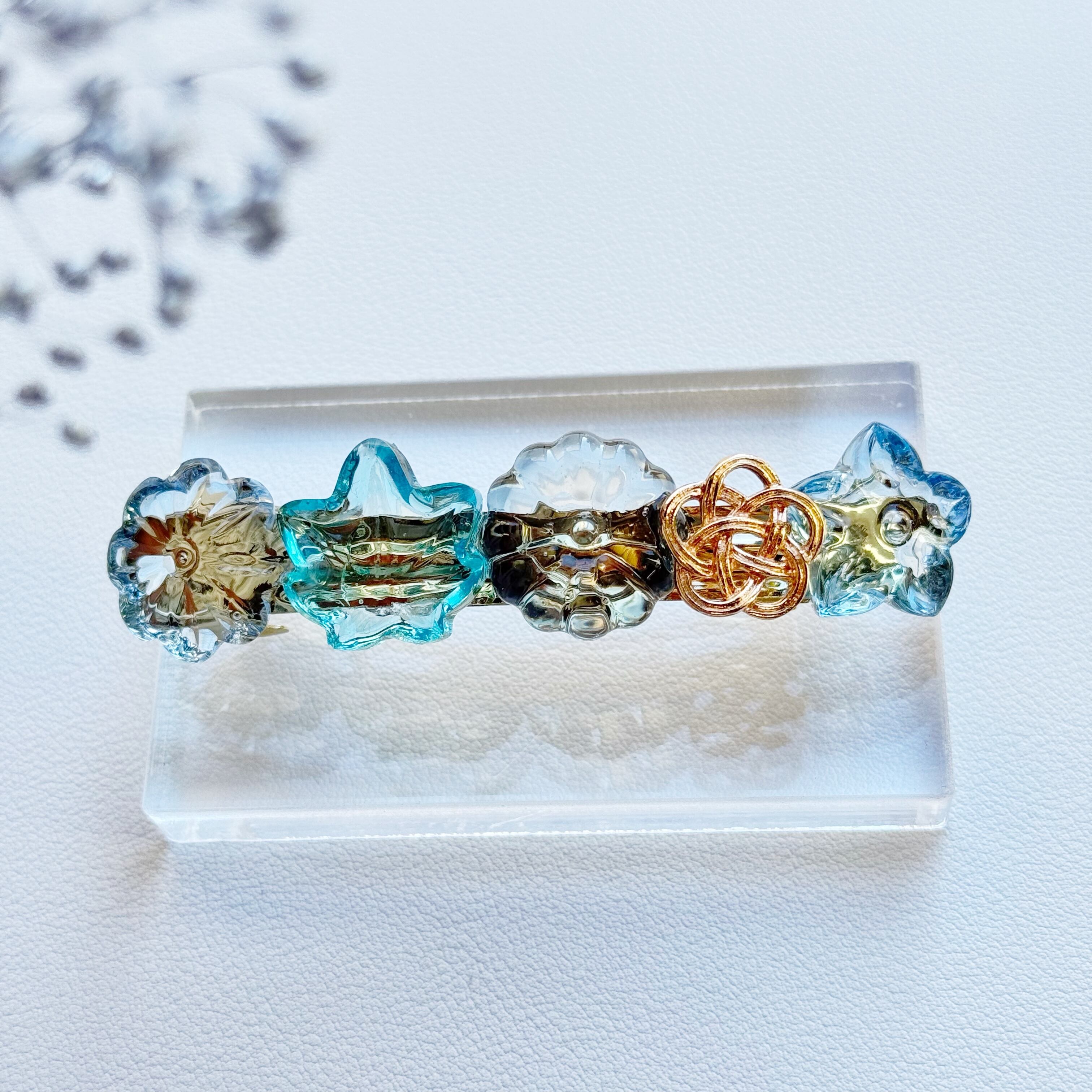 透明感の美しい レジンで作った和菓子のバレッタ ブルー