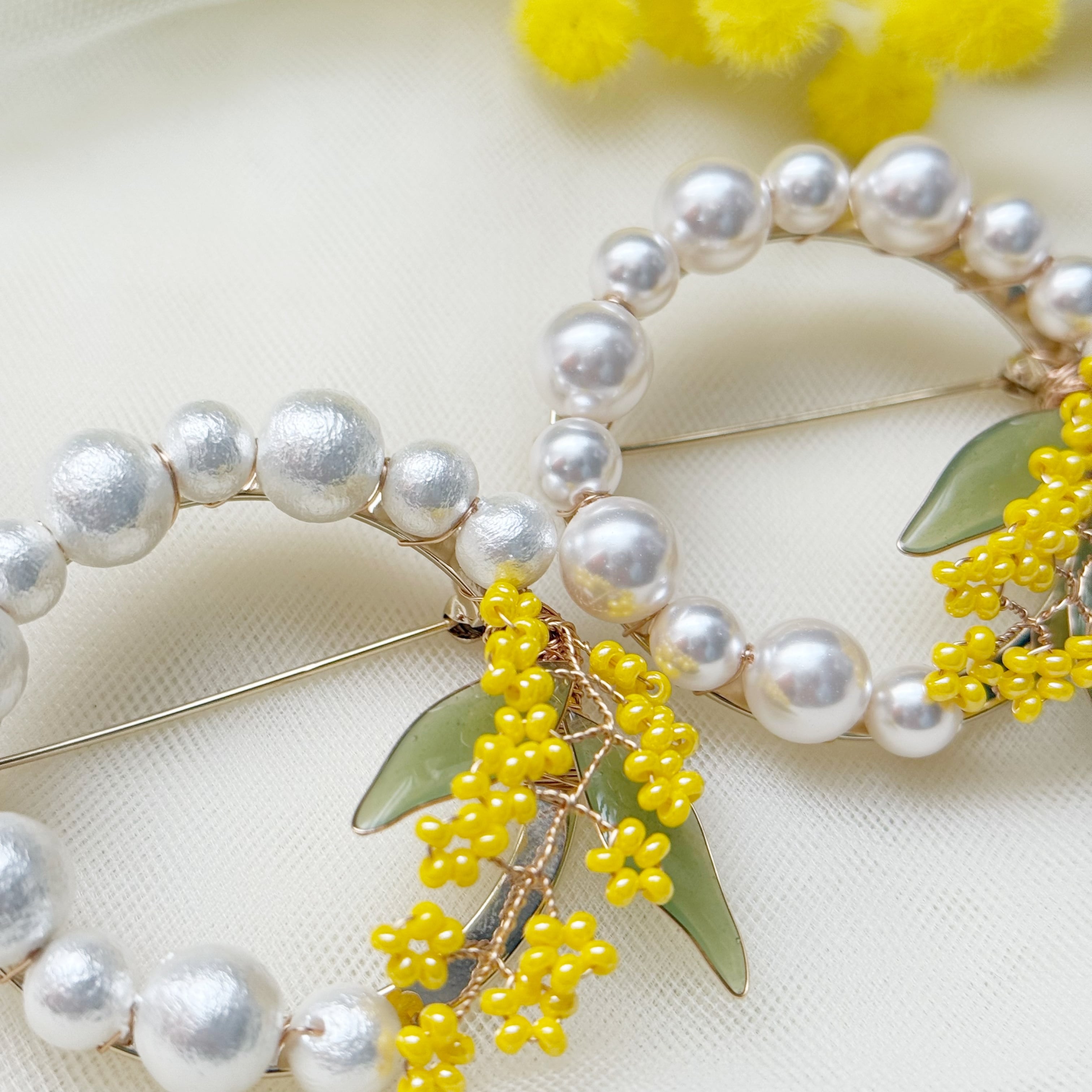 【3日以内発送】春を感じる ミモザとパールのブローチ
