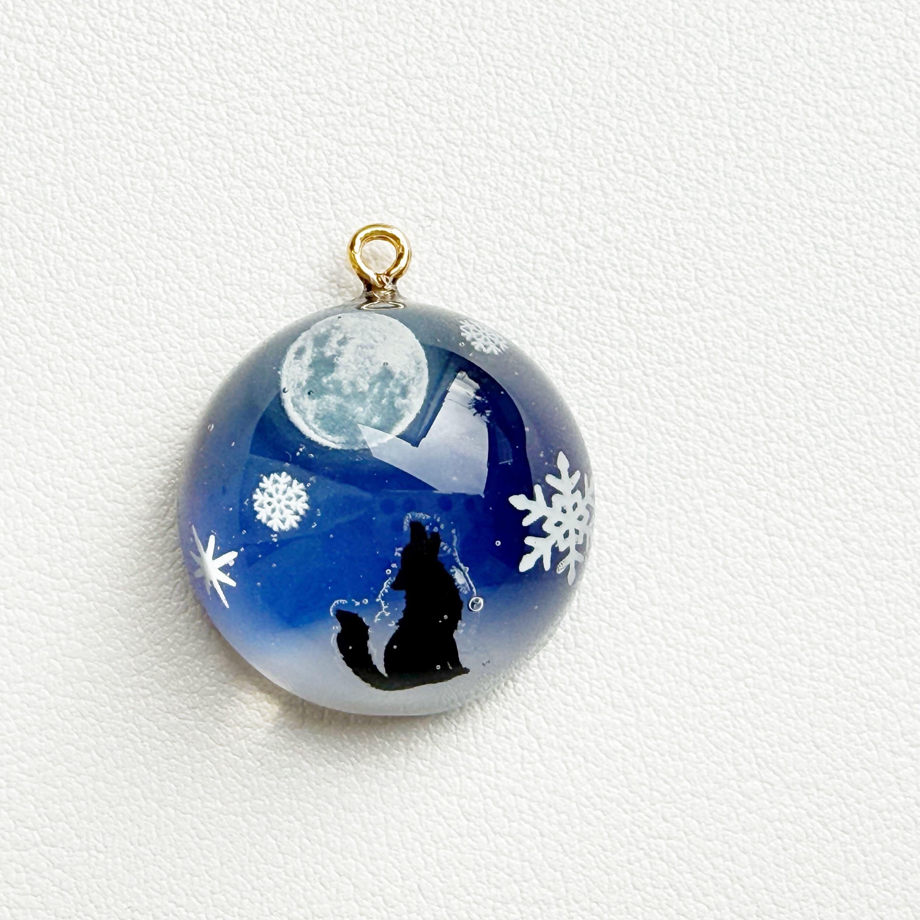 【B品】狼と満月の半球レジン キーホルダーorネックレス ゴールド