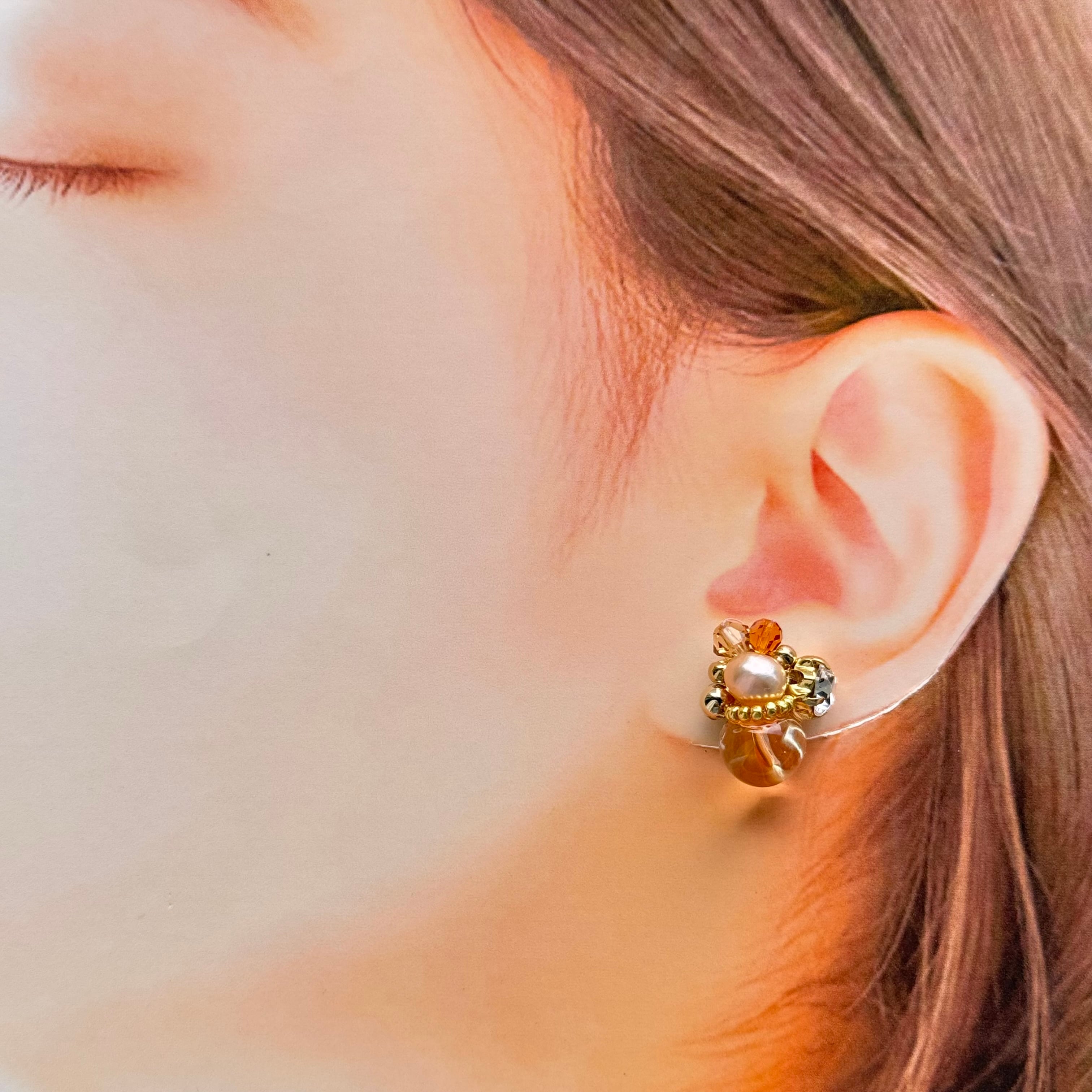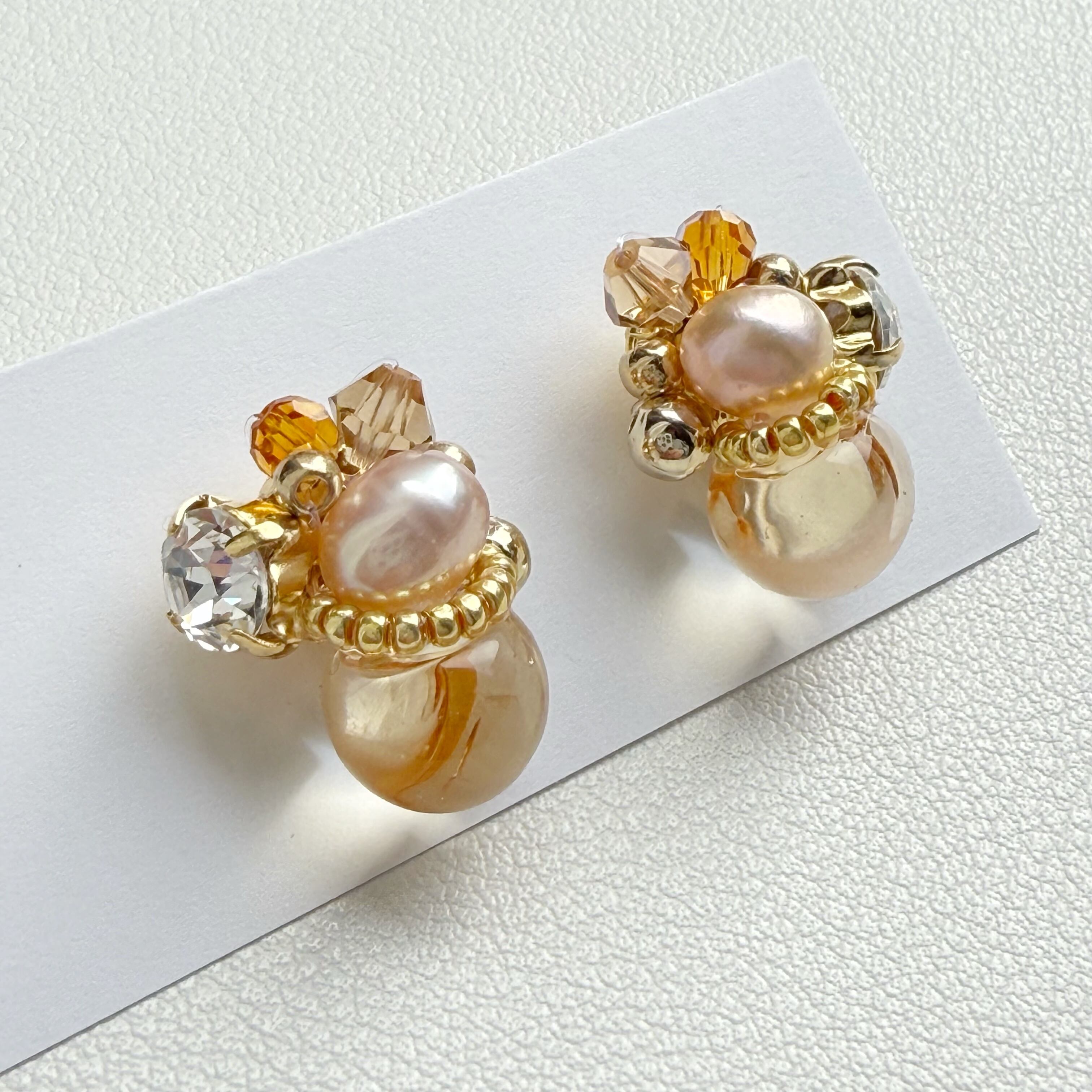 テグスで一つ一つビーズやクリスタルガラスを編み込んで丁寧にお作りした、イヤーアクセサリーです。