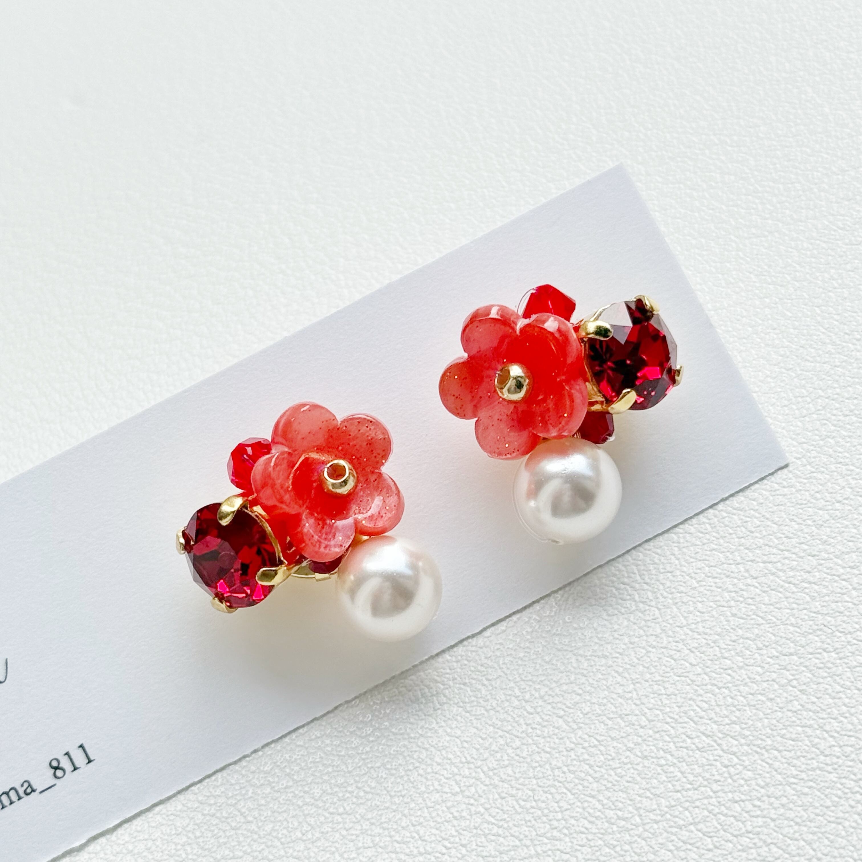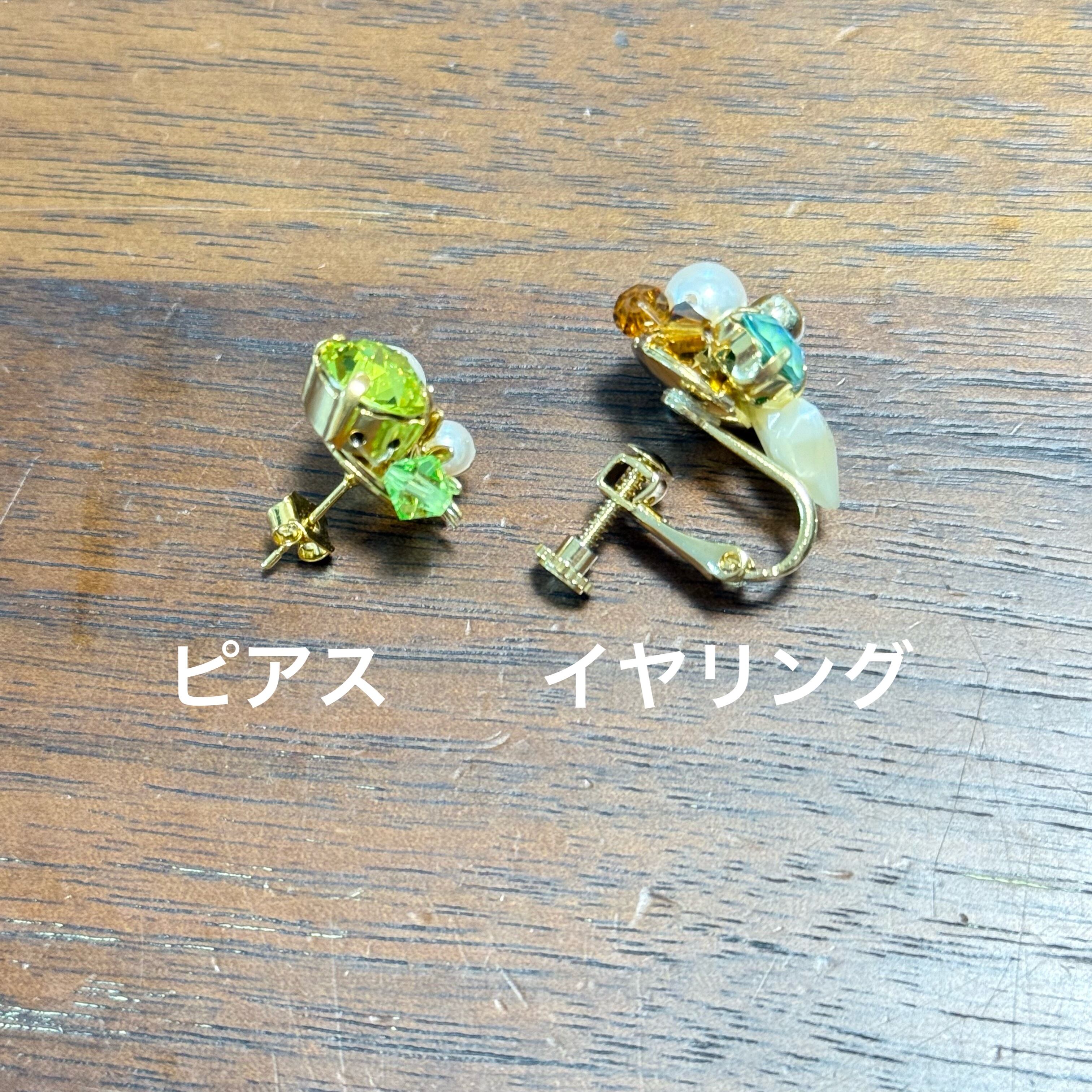 テグスで一つ一つビーズやクリスタルガラスを編み込んで丁寧にお作りした、イヤーアクセサリーです。