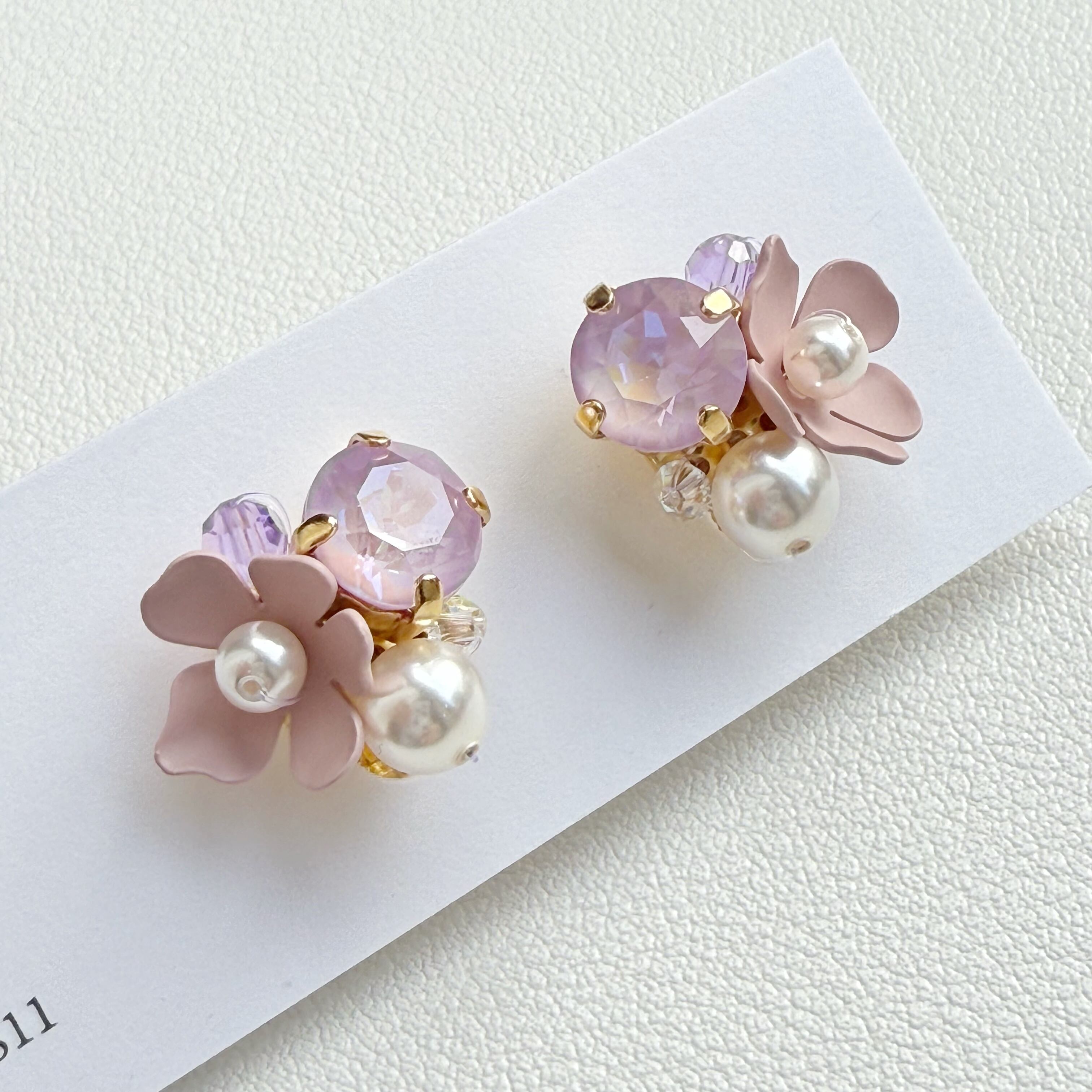 テグスで一つ一つビーズやクリスタルガラスを編み込んで丁寧にお作りした、イヤーアクセサリーです。