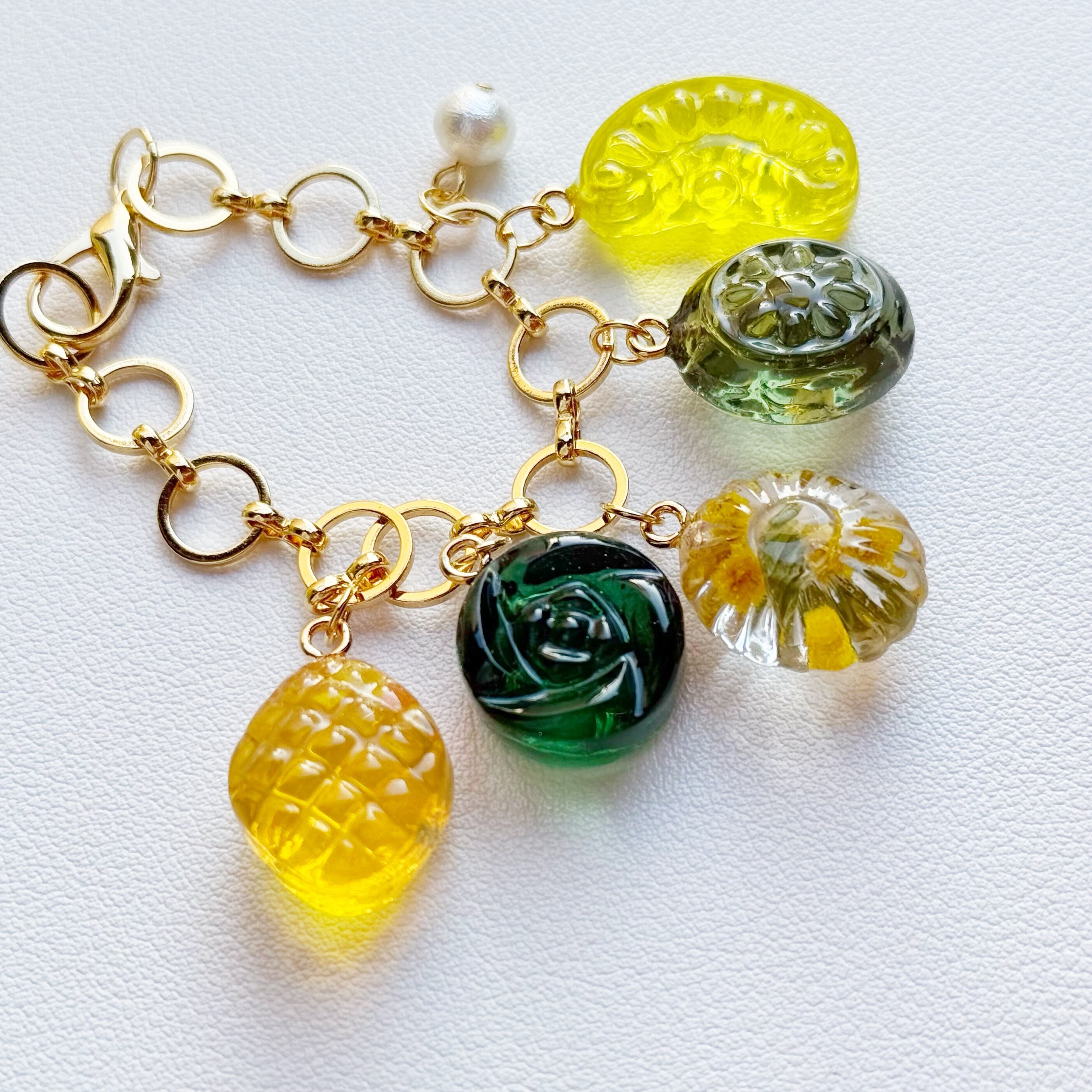 ミモザカラーなデザインの飴ちゃんキーホルダーです。